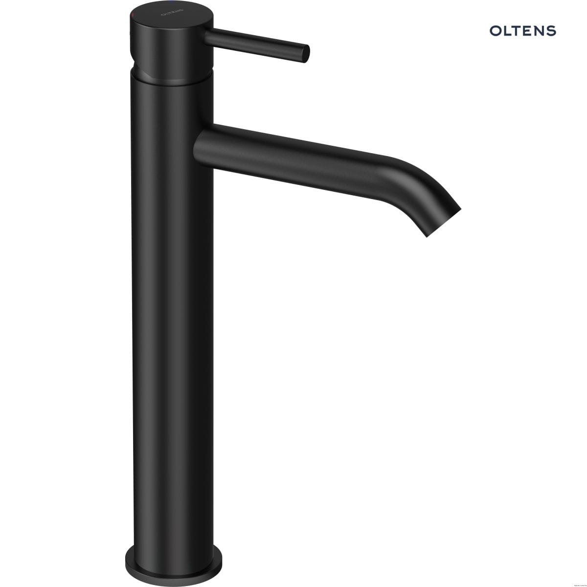 Oltens Molle bateria umywalkowa stojąca wysoka czarny mat 32400300. Szczegółowe dane techniczne: montaż: stojąca, typ: jednouchwytowa, rodzaj: zwykła, załączone wyposażenie: bez korka, rodzaj wylewki: stała, kolor: czarny