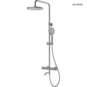 Oltens Vatten Numa zestaw wannowo-prysznicowy ścienny z baterią termostatyczną i deszczownicą nikiel 36507910