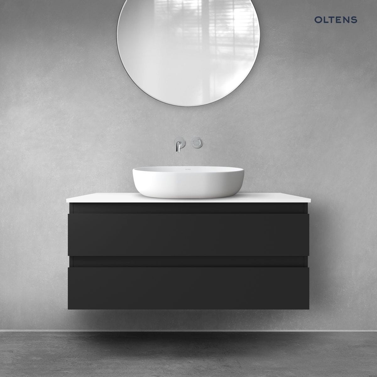 Oltens Vernal szafka 100 cm podumywalkowa wisząca z blatem czarny mat/biały połysk 68123300