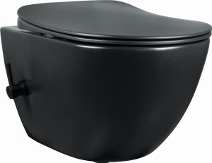 Toaleta z funkcją bidetu gwarantuje doskonałą higienę i komfort. Jest wykonana z trwałej ceramiki w eleganckim, czarnym kolorze. Brak kołnierza w misce zapobiega gromadzeniu się bakterii i zanieczyszczeń, co ułatwia utrzymanie jej w czystości. W zestawie znajduje się wolno opadająca deska Slim oraz niezbędny zestaw montażowy. Miska wisząca WC jest zaprojektowana tak, aby pasować do większości standardowych stelaży podtynkowych dostępnych na rynku.