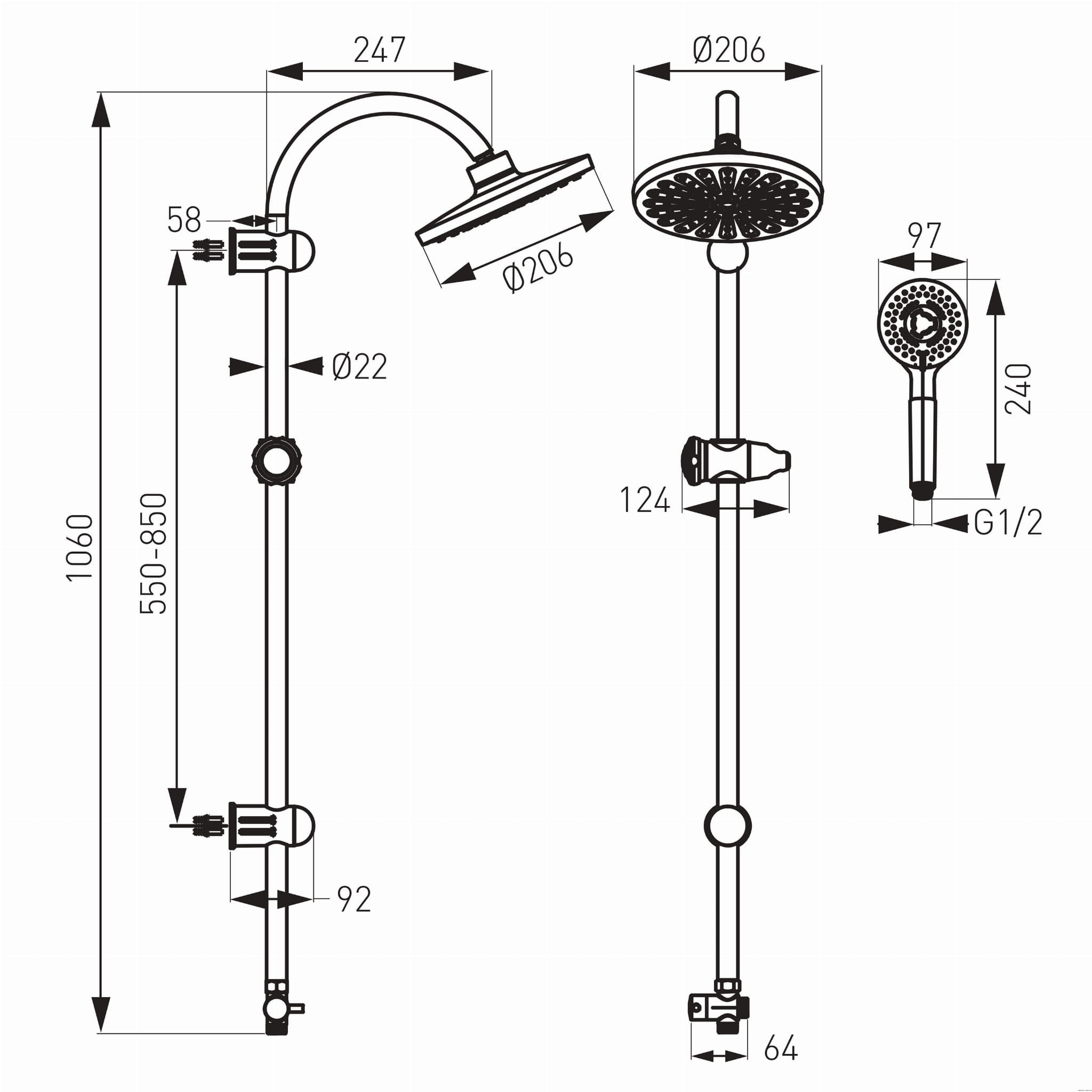 Producent CorsanZestaw Natryskowy Kolumna Prysznicowa Produkcji Corsan Lugo Deszczownica 25cm Gunmetal
