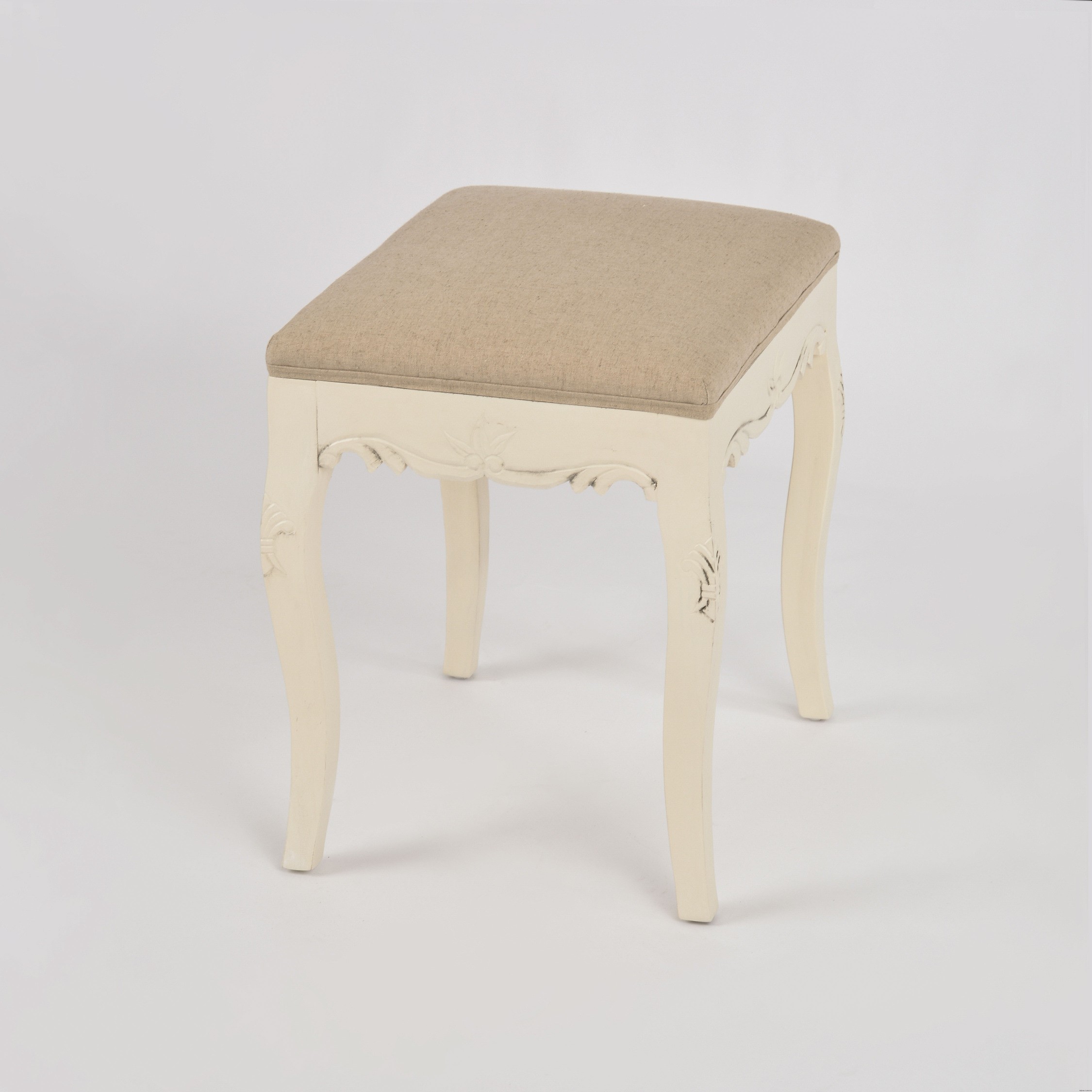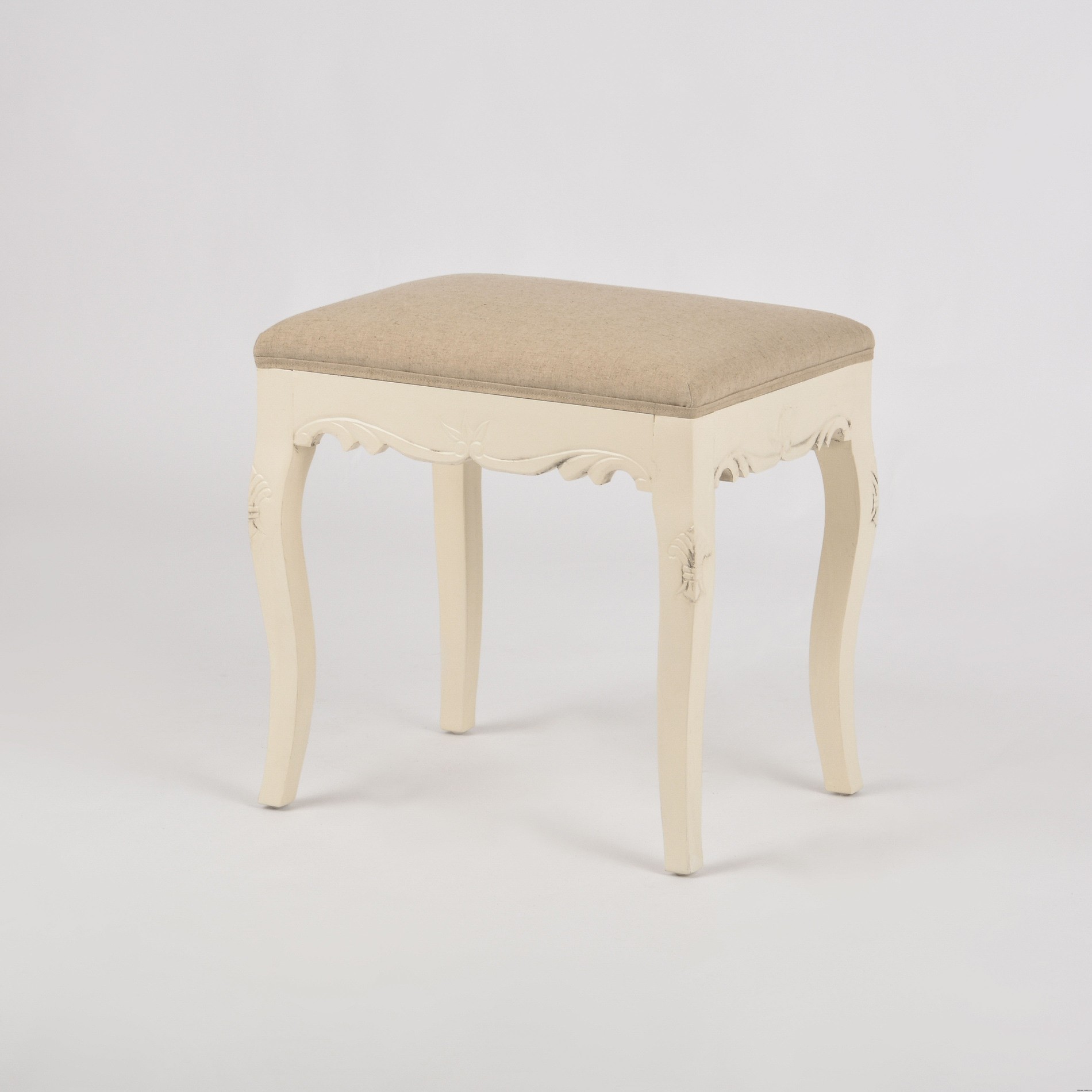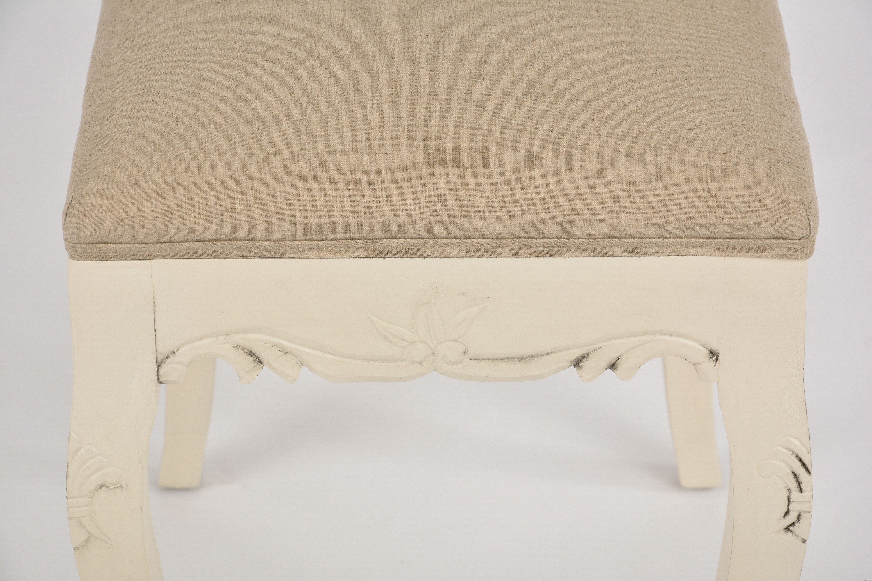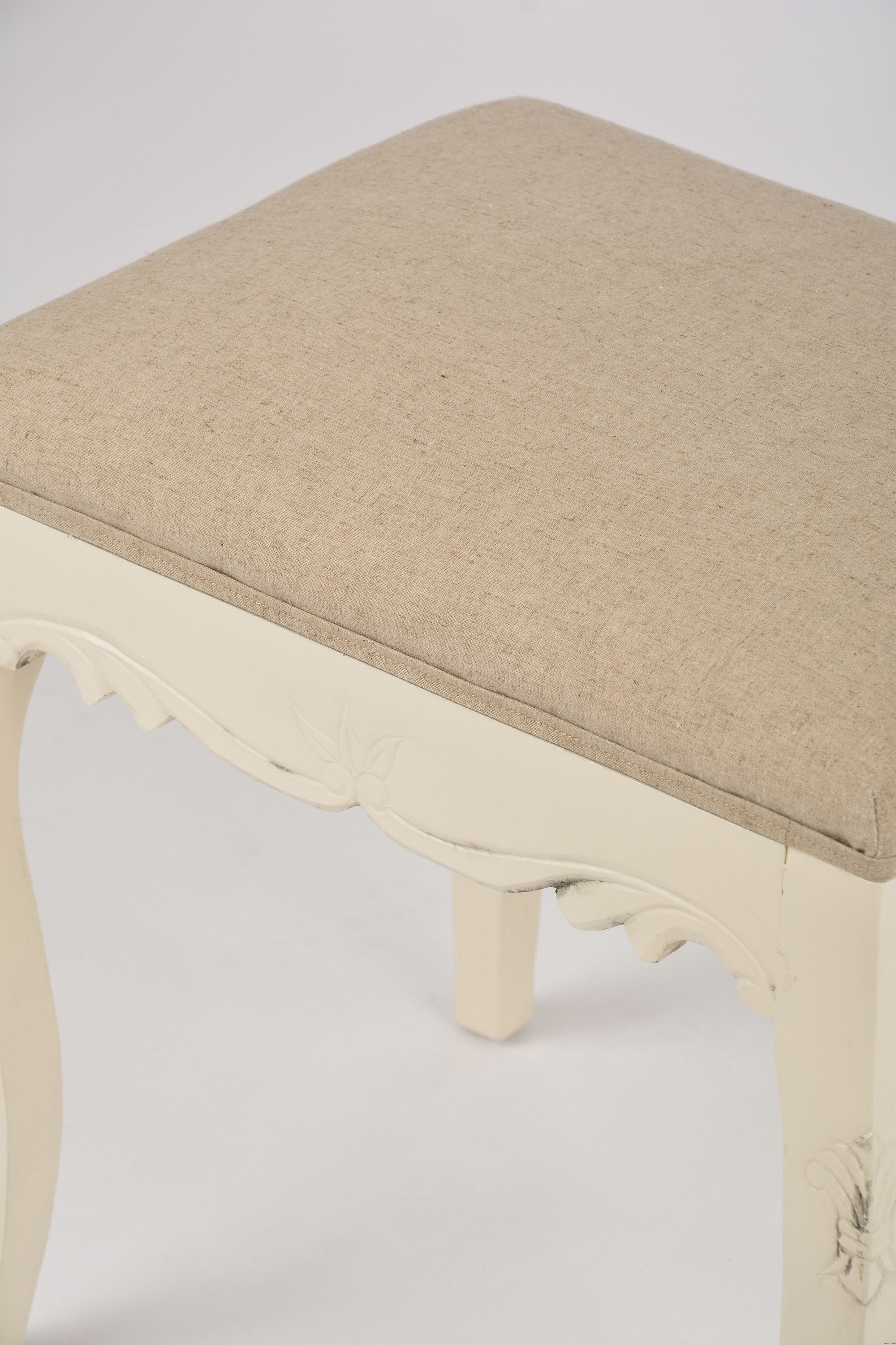 Siedzisko tapicerowane w stylu prowansalskim w kolorze kremowym.