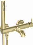 Zestaw natryskowy Silia charakteryzuje się opływowym, zaokrąglonym kształtem. Wykonana została z trwałego mosiądzu i wykończona w kolorze szczotkowanego złota. Bateria posiada uchwyt słuchawki prysznicowej zintegrowany z korpusem baterii i ceramiczny, mechaniczny przełącznik funkcji. Produkt pochodzi z bogatej kolekcji Silia, która umożliwia kompleksowe wyposażenie całej łazienki.