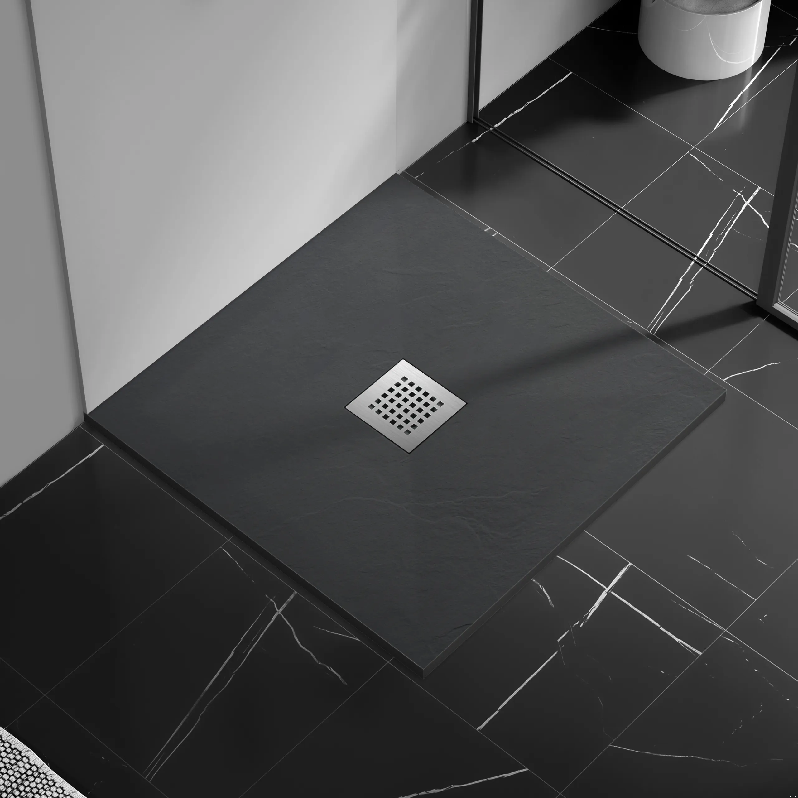 BRODZIK STONE-TRAY w kolorze Ciemnoszarym o delikatnej fakturze kamienia łupkowego stanowi niezwykle nowoczesne i praktyczne rozwiązanie do każdej łazienki. Idealnie komponuje się z naturalnymi materiałami, takimi jak drewno, stal.