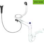 Syfon typu Space Saving zaprojektowany jest tak, aby zajmować jak najmniej miejsca pod zlewem. Oszczędność przestrzeni jest możliwa dzięki specjalnie wyprofilowanym rurom, które przylegają jak najbliżej ścian szafki. To rozwiązanie daje nam możliwość wygodnego ustawienia np. koszy do segregacji odpadów. Model pełni również funkcję dekoracyjną - jet wyposażony w estetyczne, płaskie osłony na przelew i sitko oraz gładki korek sterowany za pomocą przycisku. Syfon przeznaczony jest do granitowych zlewozmywaków jednokomorowych. Posiada przyłącze do zmywarki oraz najbardziej popularny rozmiar odpływu - 3,5 cala.