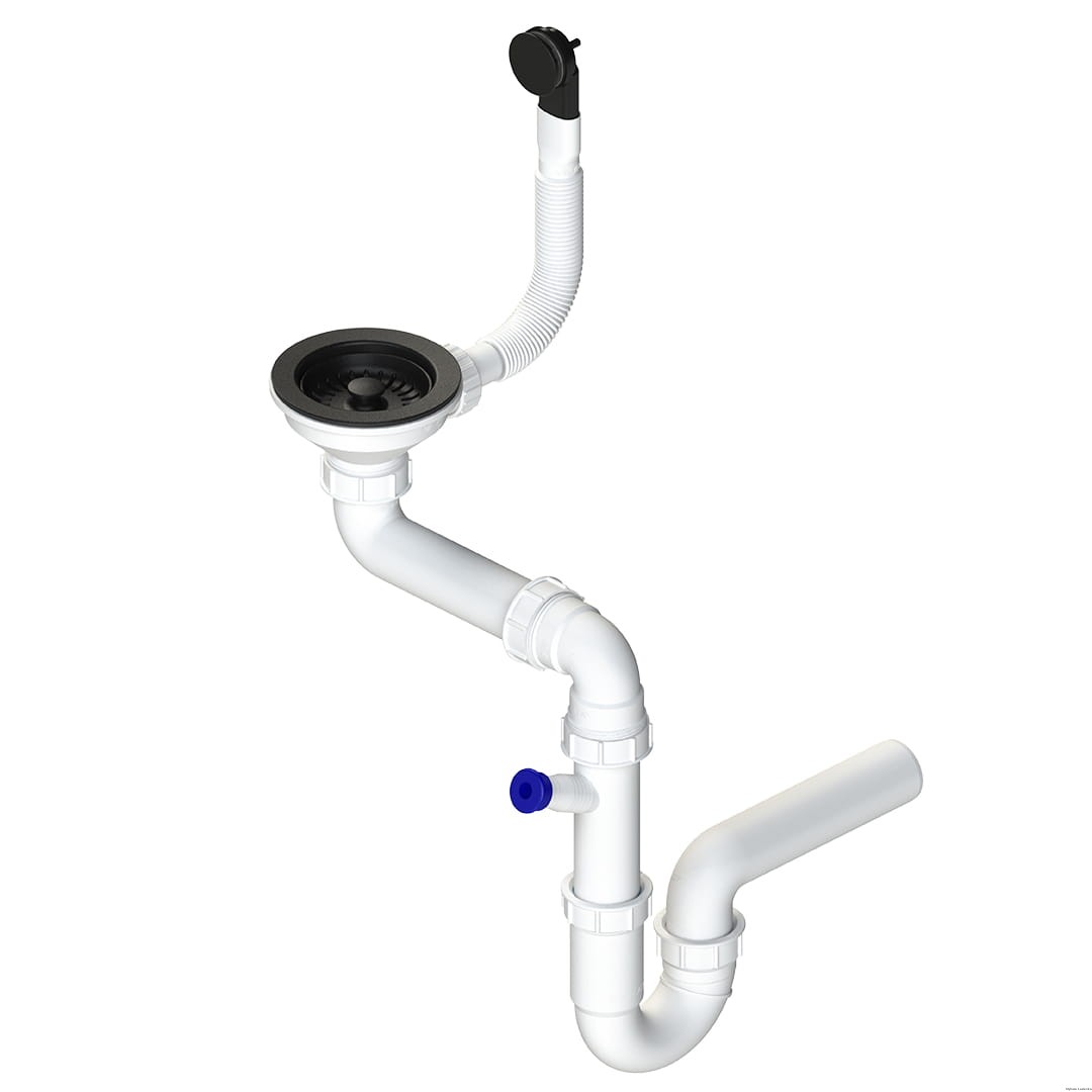 Syfon do zlewu 1-komorowego bez korka przeznaczony jest do modeli bez otworów lub takich, które mają jeden otwór na baterię lub dwa - w tm jeden na dozownik do płynu do naczyń, drugi na kran. Ruchome, wyjmowane sitko w odpływie umożliwia szybkie pozbycie się zalegających w nim resztek jedzenia i innych nieczystości, tym samym chroniąc instalację przed zatkaniem. Rury syfonu są wyprofilowane tak, aby w szafce było jak najwięcej miejsca, pozwalając na wygodną organizację do segregacji śmieci. Model do zlewów wykonanych z granitu oraz kompozytowych z okrągłym przelewem. Możliwość podłączenia zmywarki. Standardowa średnica odpływu - 3,5 cala.