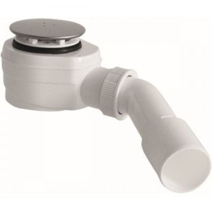Syfon do brodzika, z tworzywa sztucznego w kolorze białym do brodzików z odpływem 50 mm, wysoka wydajność, przepływ 54 l/min. Wyposażony w estetyczną stalową pokrywę grubości 2 mm z 8 punktami podparcia, co pozwala na zachowanie wysokiej odporności na obciążenia.