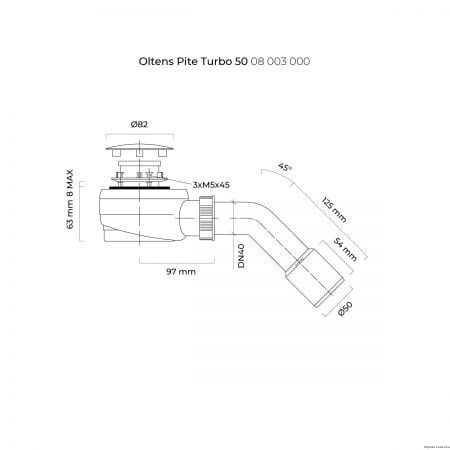 Syfon brodzikowy odpływ 50 mm plastikowy chrom Pite Turbo , nr kat. 08003000 , producent Oltens