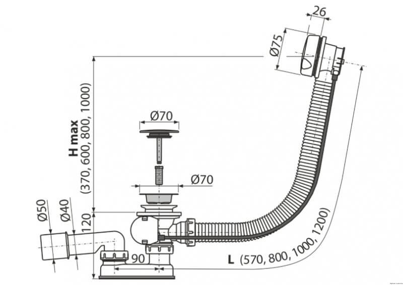 Syfon wannowy automatyczny ∅ 50 biały 6103064 Polimat