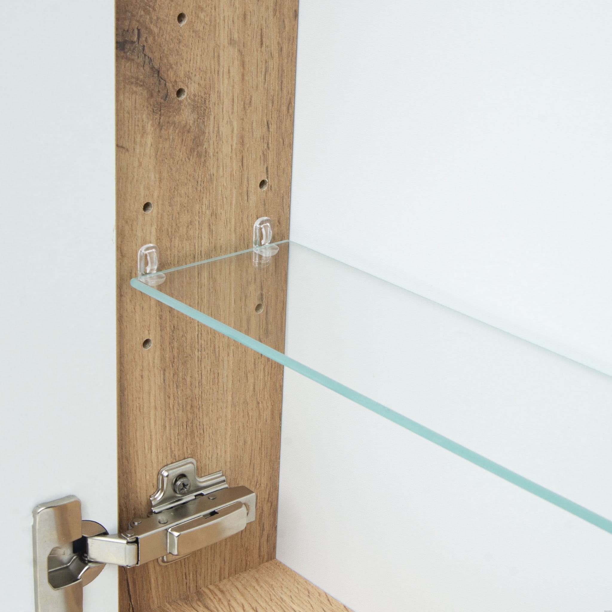 Szafka lustrzana o szerokości 60 cm posiada jedne uniwersalne drzwi, które można montować do otwierania jako prawe lub lewe. Montaż do ściany odbywa się za pomocą regulowanych zawieszek montażowych pozwalających na łatwe poziomowanie. Szafka może być stosowana jako element uzupełniający lub jako samodzielny produkt według potrzeb użytkownika. Wewnątrz znajdują się półki z regulacją wysokości.
