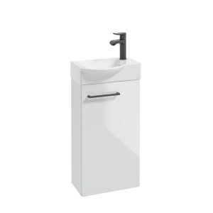 Wisząca szafka pod umywalke METRO SYSTEM D40 z drzwiami wyposażonymi w system soft close. Relingowe, czarne uchwyty podkreślają geometryczną formę szafki. Mebel dedykowany pod umywalke meblową MINI 40 lu TUMMY 40. Szafka należy do kolekcji modułowej, aranzacja może zostać uzupelniona o pozostałe modele z kolekcji.