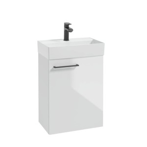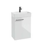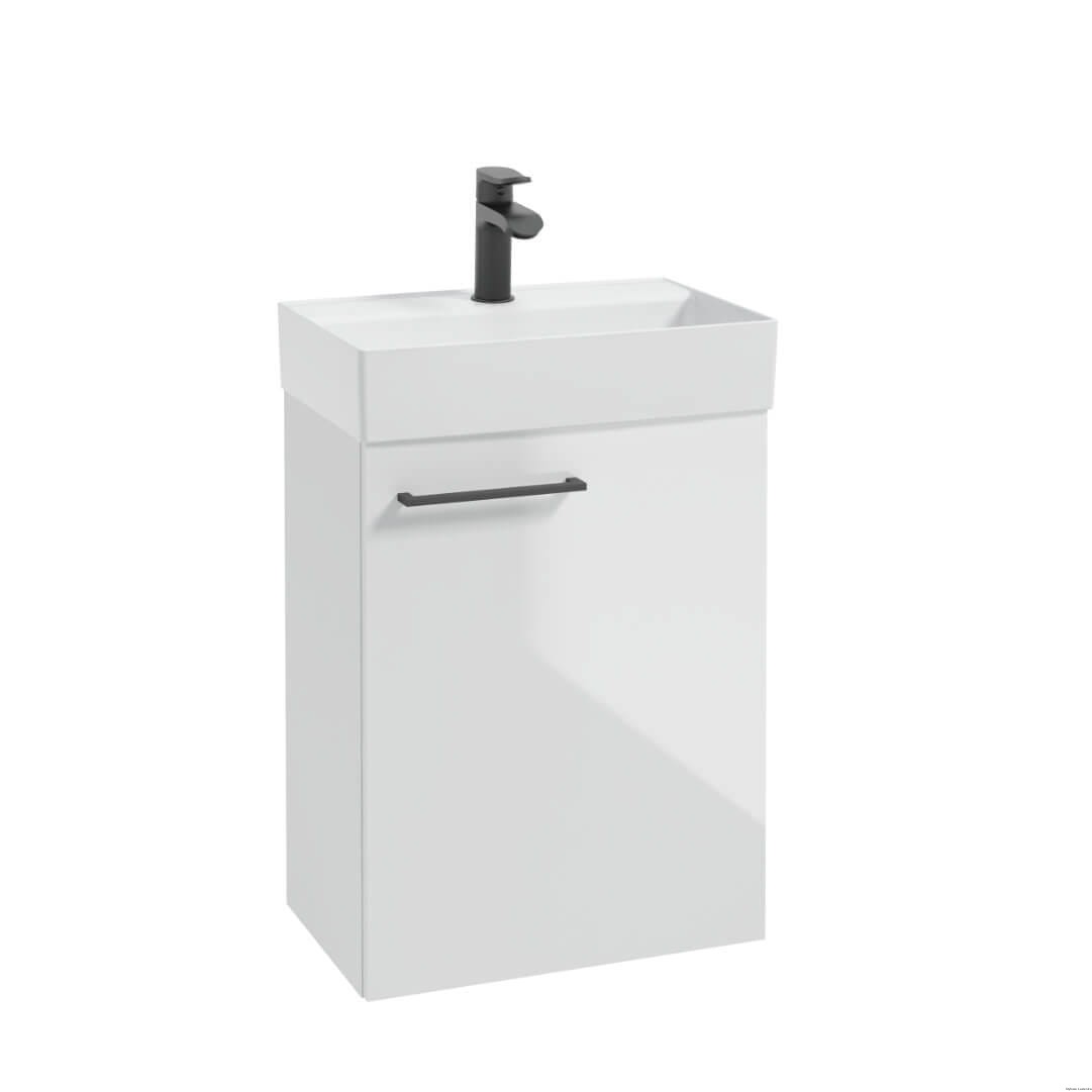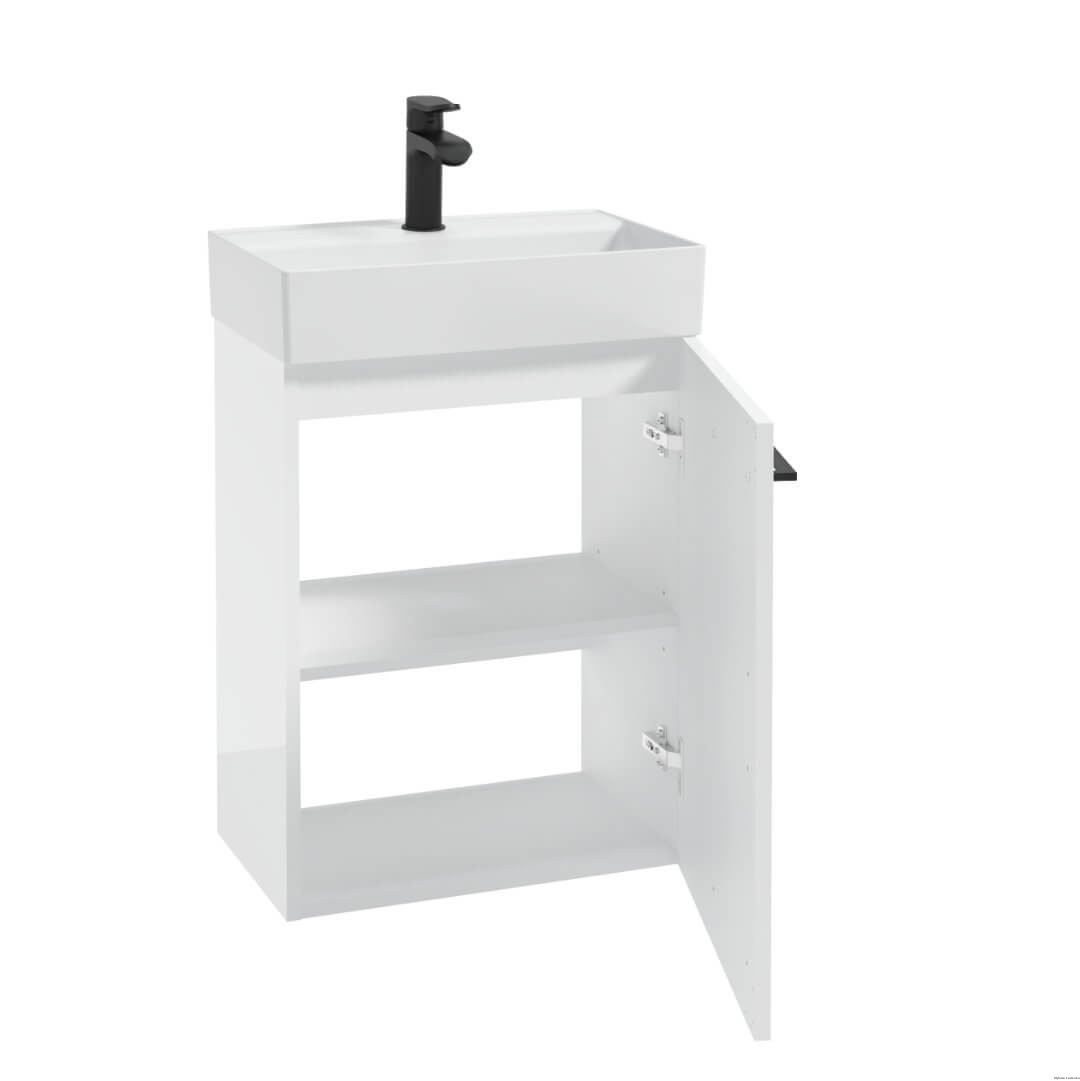 Wisząca szafka pod umywalke METRO SYSTEM D50 z drzwiami wyposażonymi w system soft close. Relingowe, czarne uchwyty podkreślają geometryczną formę szafki. Mebel dedykowany pod umywalke meblową VALENCIA NEW 50. Szafka należy do kolekcji modułowej, aranzacja może zostać uzupelniona o pozostałe modele z kolekcji.