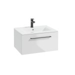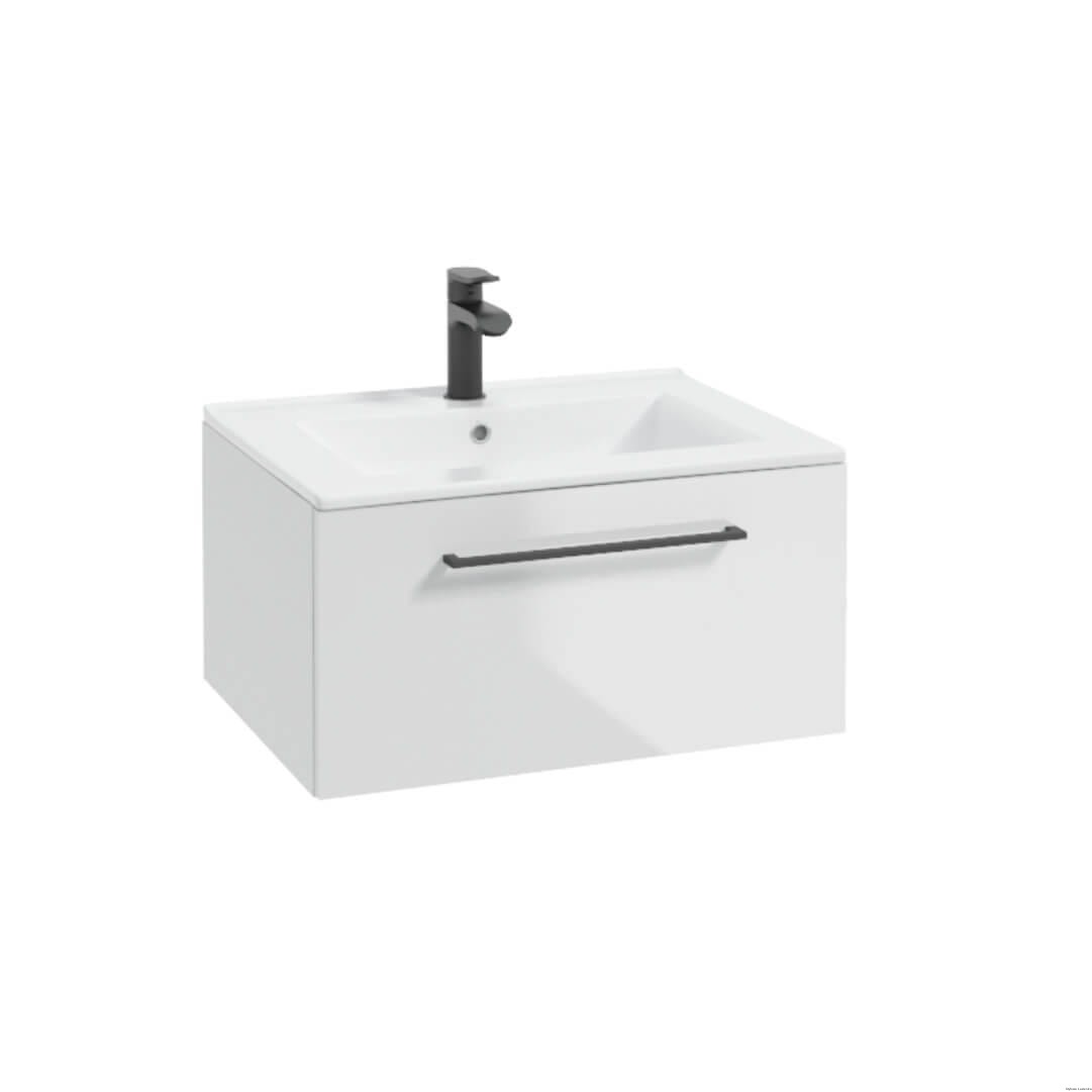 Wisząca szafka podumywalkowa METRO SYSTEM D60 składa się z 1 szuflady wyposażonej w funkcję cichego domykania soft close. Zastosowany wysokiej jakości lakier światłoutwardzalny na korpusie i froncie podnosi odporność na promieniowanie słoneczne. Relingowy, czarny uchwyt pięknie podkreślaja geometryczną formę mebli.