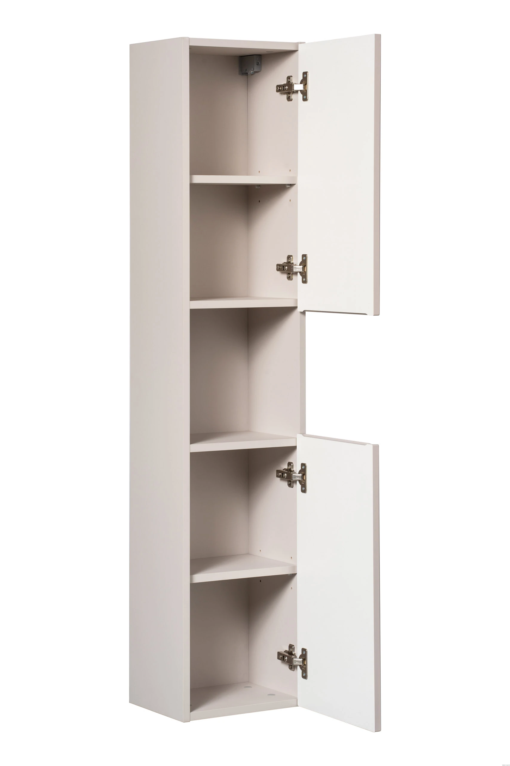 Szafka wysoka dwudrzwiowa z kolekcji Nova Cashmere łączy harmonijny, minimalistyczny design z funkcjonalnością, inspirowaną codziennymi potrzebami i trwałymi rozwiązaniami. Pionowe, ryflowane fronty nadają meblom unikalny charakter i optycznie powiększają przestrzeń łazienki, a kaszmirowy kolor dodaje subtelnego ciepła, doskonale komponując się z różnorodnymi aranżacjami wnętrz. Zintegrowane podchwyty nie tylko podkreślają jej styl, ale również wprowadzają spójność wizualną.