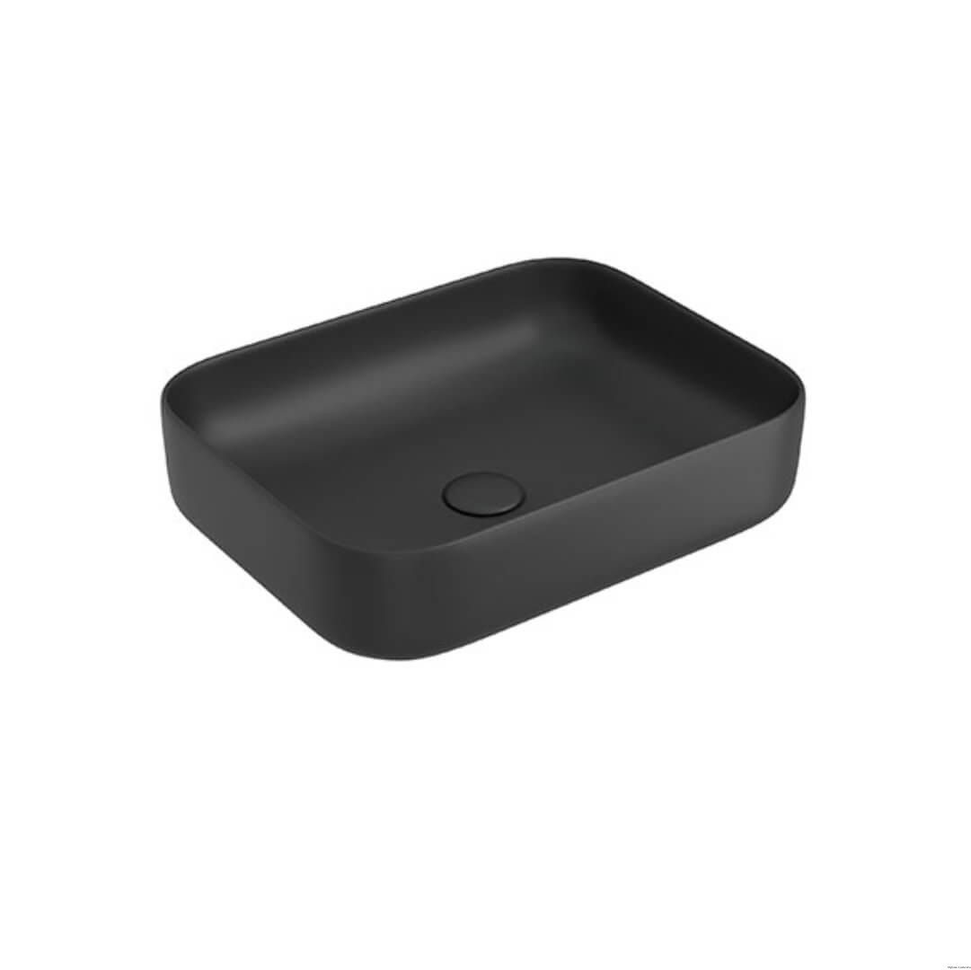 Ceramiczna umywalka nablatowa TERAMO jest doskonałym uzupełnieniem mebli łazienkowych. Jej geometryczny kształt i czarny kolor podkreśli design w aranżowanej łazience.