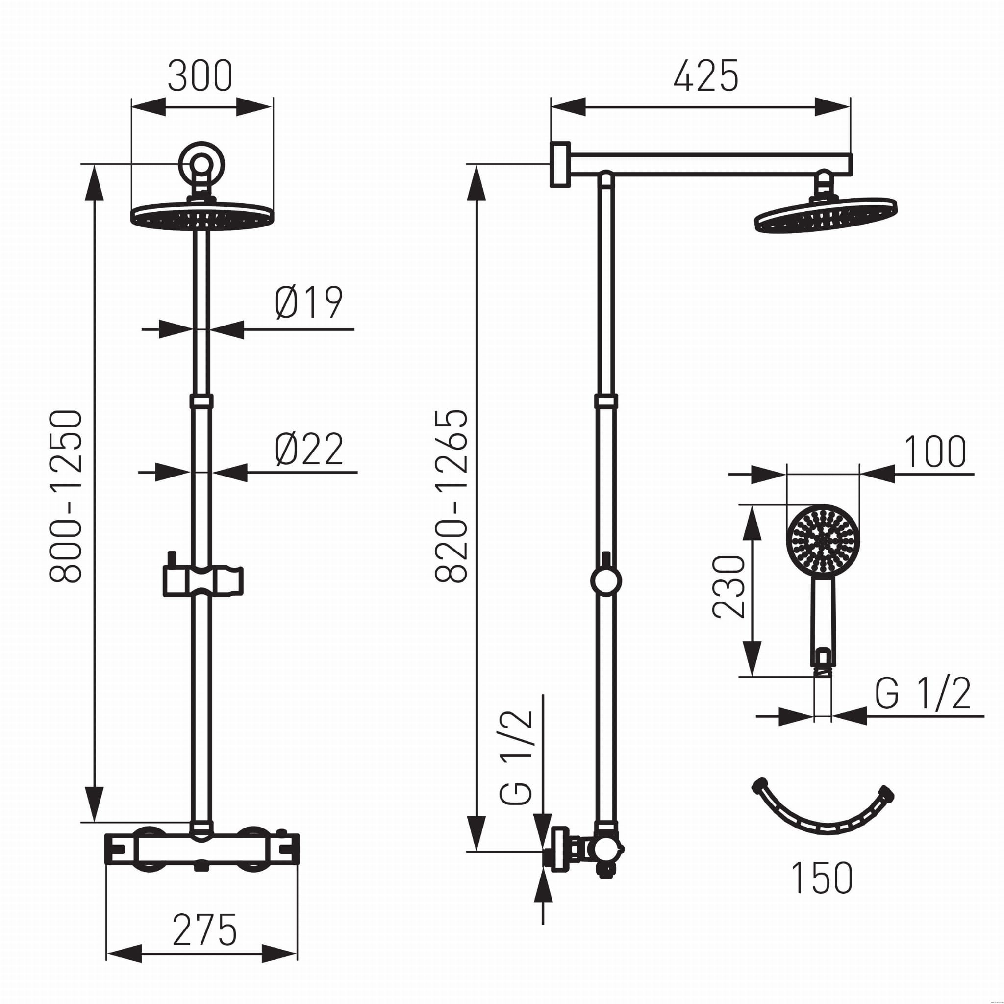 TREVI zestaw natryskowy z baterią termostatyczną, chrom. Zestaw składający się z solidnej, okrągłej deszczownicy typu slim 30 cm, 3-funkcyjnej rączki natryskowej z możliwością wyboru typu strumienia oraz klasycznej baterii termostatycznej. Zestaw posiada drążek o regulowanej długości, dzięki tej funkcji podczas montażu możemy dopasować wysokość deszczownicy do wzrostu użytkownika. System Easy Clean ułatwi usuwanie osadu wapiennego z rączki i deszczowni. Podsumowanie: Trevi