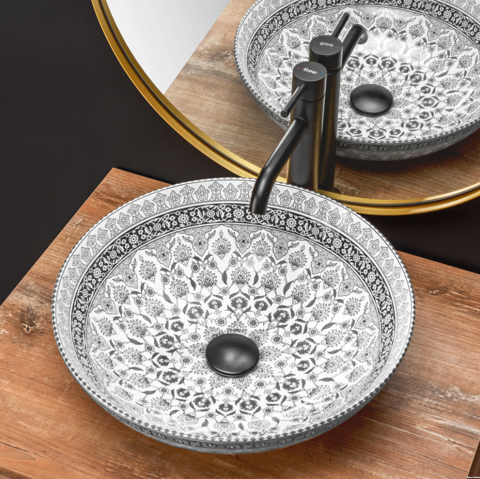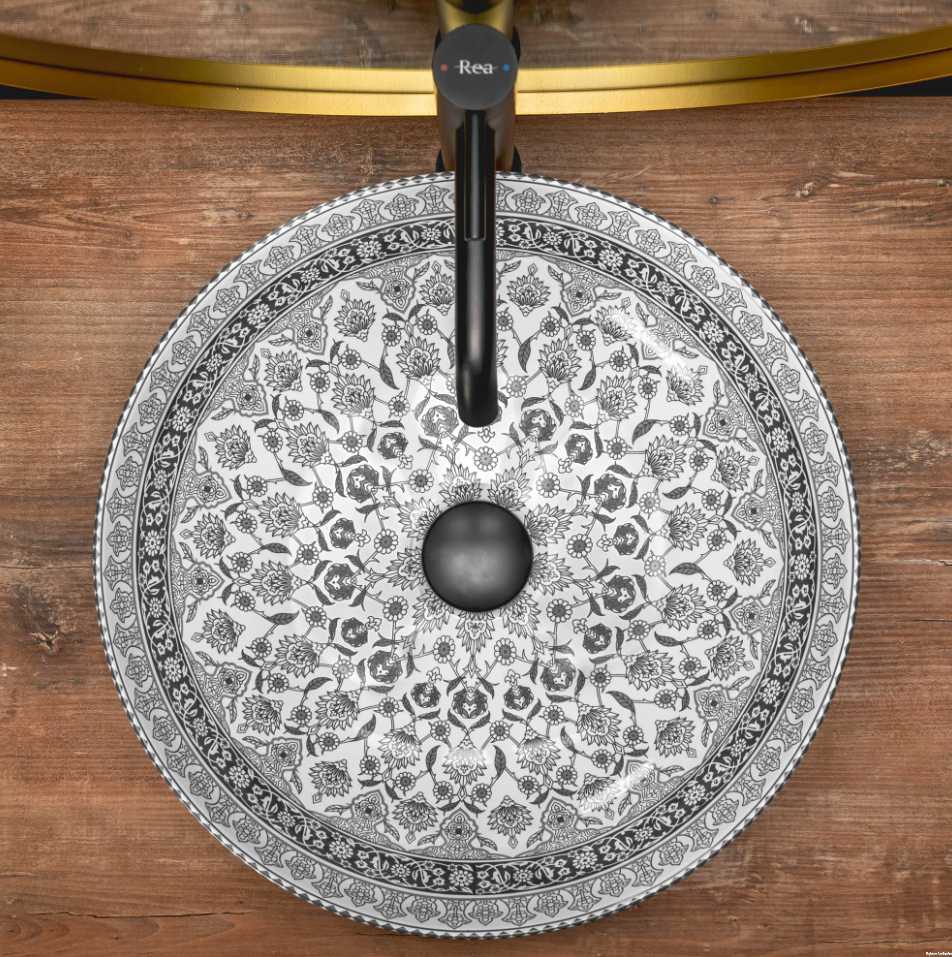 Umywalka wykonana z najwyższej jakości ceramiki. Wykończenie na wysoki połysk wraz z ciemnym wzorem nada klasy, ozdabiając przy tym wnętrze. Sprawdzi się jako praktyczne rozwiązanie, całość bardzo łatwo utrzymać w czystości. Będzie świetnym dodatkiem dla miłośników owalnych kształtów, wnosząc elegancję do aranżacji łazienki w domu i biurze.Umywalka jest przystosowana do montażu na blacie bądź szafce. Została wykonana z wysokogatunkowej ceramiki sanitarnej. Dzięki specjalnej fazie produkcji jest trwała i łatwa w utrzymaniu czystości.