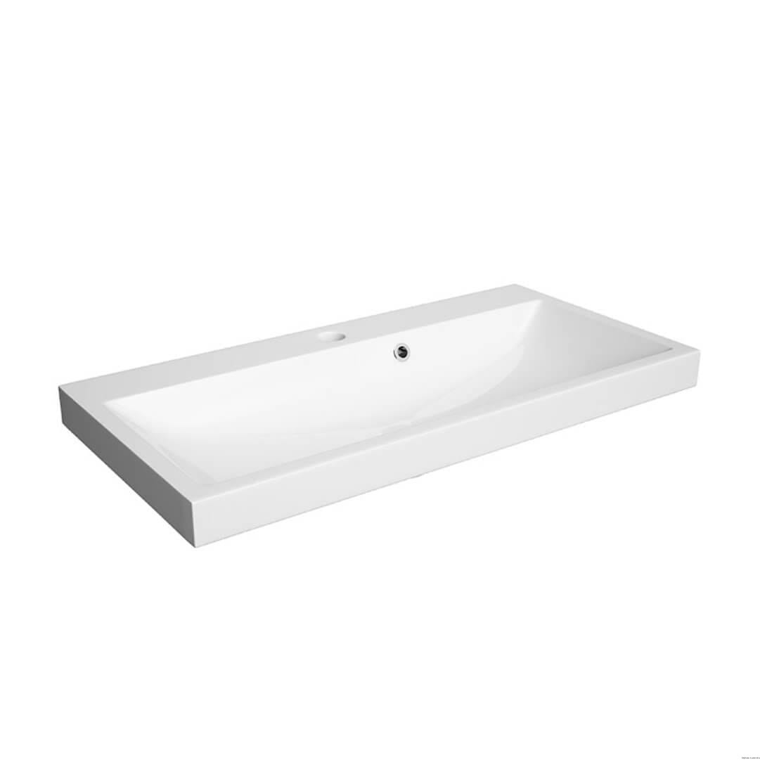 Umywalka z konglomeratu OLEX 80, o szerokości 80 cm i głębokości 40 cm, o nowoczesnym kształcie i kwadratowej linii misy.