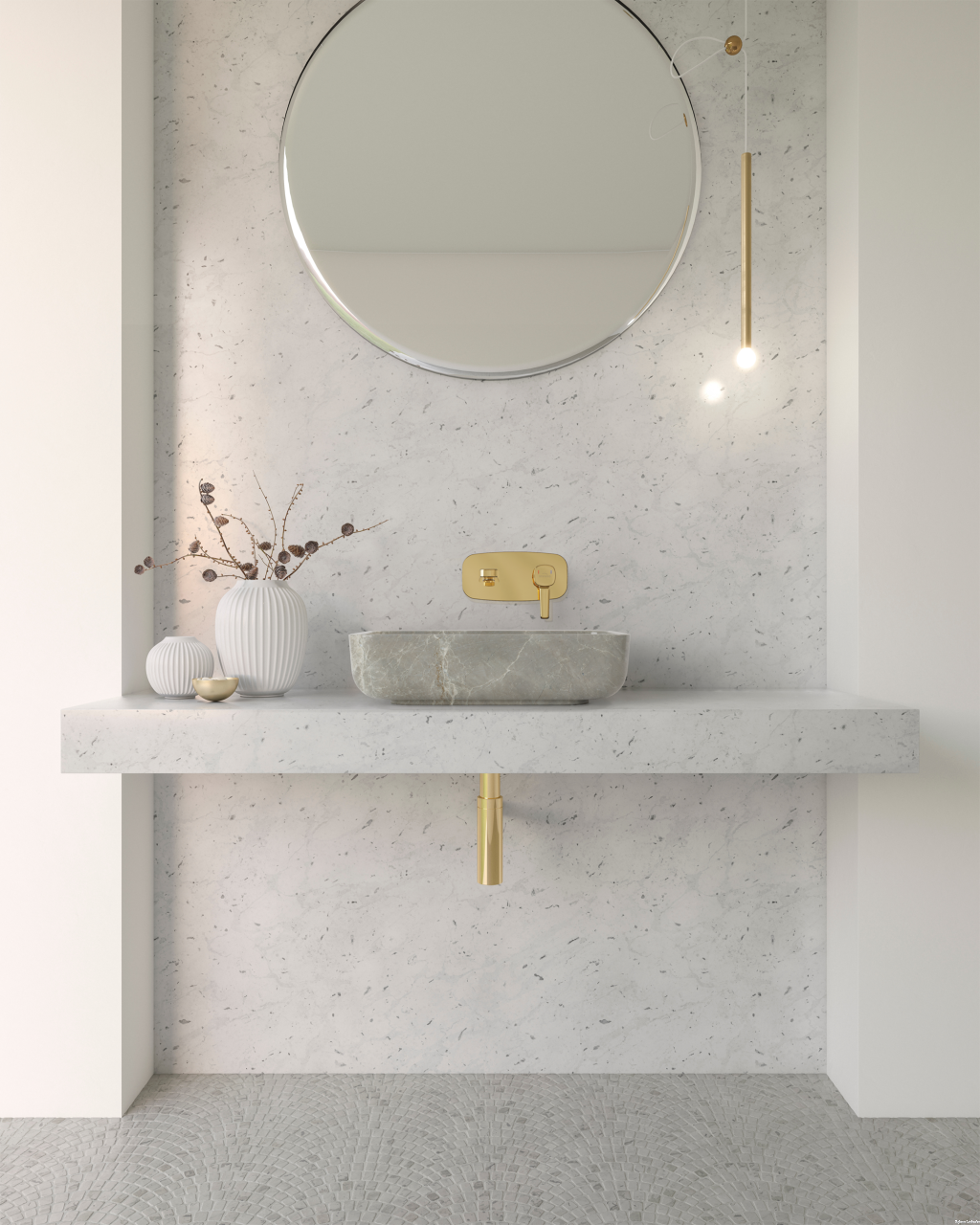 Marmur to jeden z najgorętszych trendów wnętrzarskich. Umywalka nablatowa Florina z efektem marmuru to idealne rozwiązanie dla tych, którzy pragną mieć modny akcent w łazience, ale jednocześnie, nie chcą, aby była to duża marmurowa tafla w postaci kafli lub blatu. Utrzymana w szarości będzie doskonałym uzupełnieniem stylu skandynawskiego. Wysokiej jakości ceramika sprawia, że umywalka nablatowa Florina jest odporna na wszelkiego rodzaju zarysowania. Natomiast wyjątkowo cienkie ranty umywalki nadadzą całej strefie umywalkowej subtelnego charakteru.