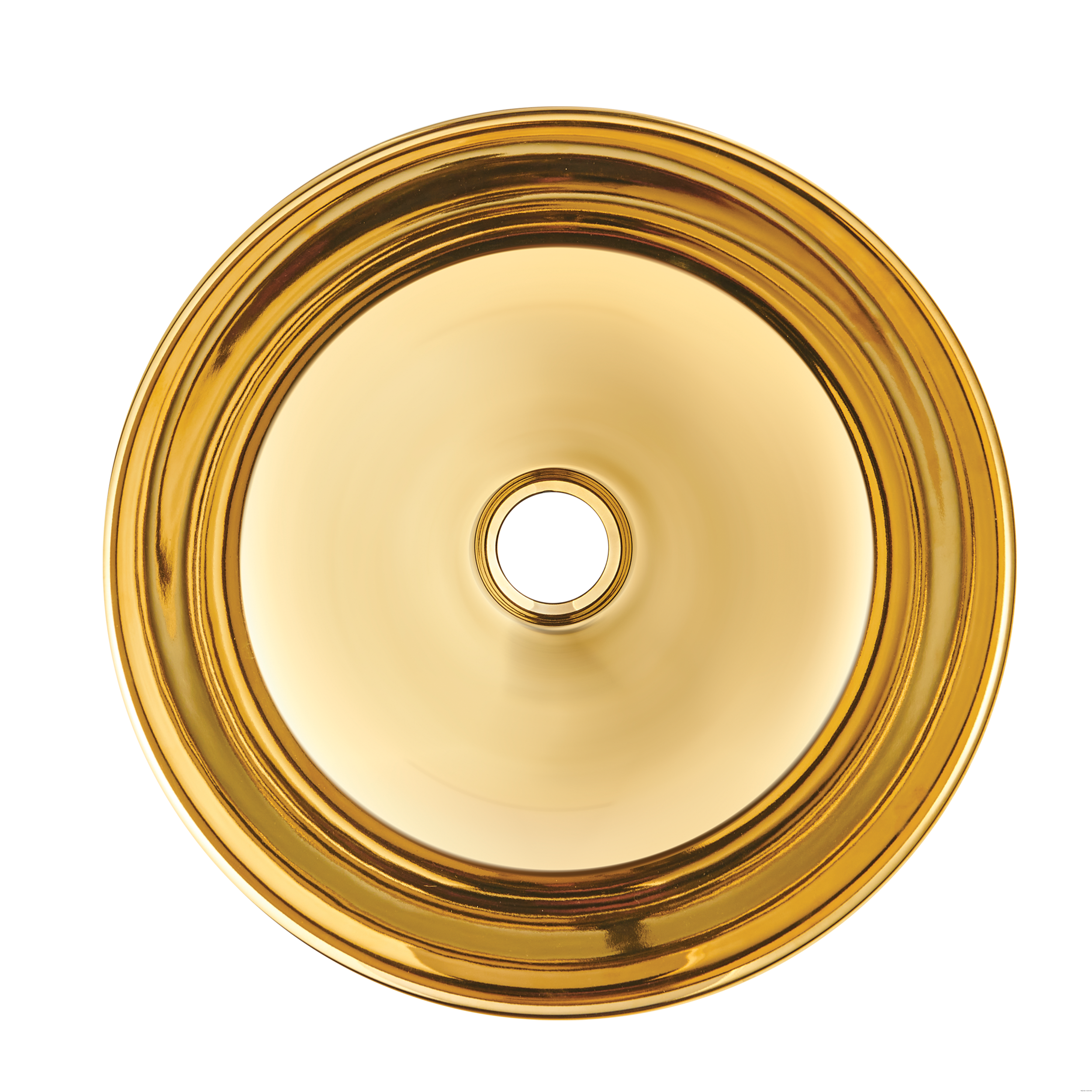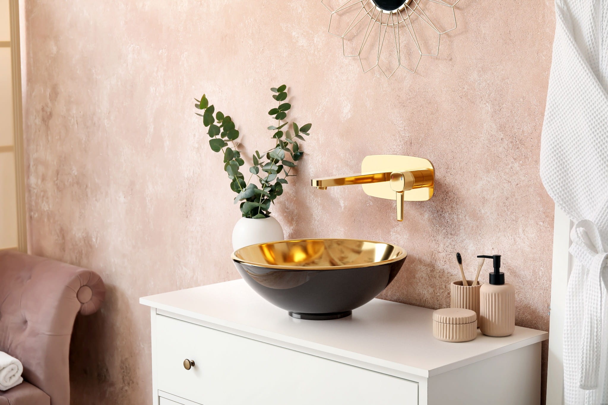 Umywalka nablatowa Tinos to propozycja umywalki o subtelnym i okrągłym kształcie, który idealnie wpasowuje się w każdą strefę umywalkową. Spośród innych modeli na rynku wyróżnia się niebywałą kolorystyką, która łączy ze sobą czerń oraz złoto. Zewnętrzne ranty umywalki utrzymane są w czerni, a wnętrze misy o złotym połysku. Średnica umywalki wynosi 39,5 cm zaś głębokość wewnętrzna misy 12 cm. Umywalka wraz z wysoką baterią umywalkową lub podtynkową stworzy funkcjonalny duet. Umywalka idealna jest do odważnych aranżacji w stylu glamour.