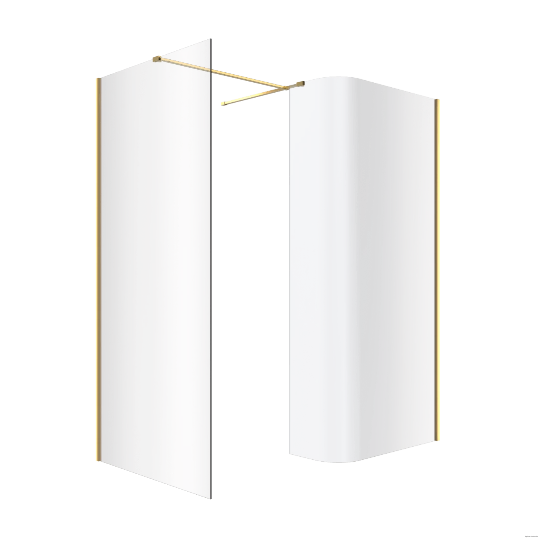 Vidoq walk-in kabina prysznicowa gięta, ścianka prosta 120cm, ścianka gięta 93cm, powłoka Clean Control, złoty połysk, producent: Excellent, nr kat: KAEX.1507.K.1200.0930.GL