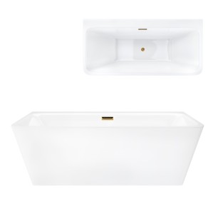 Wanna Przyścienna Wolnostojąca Produkcji Corsan Iseo 150 X 75 Cm Z Szeroką Krawędzią Korek Klik-Klak Szczotkowane Złoto