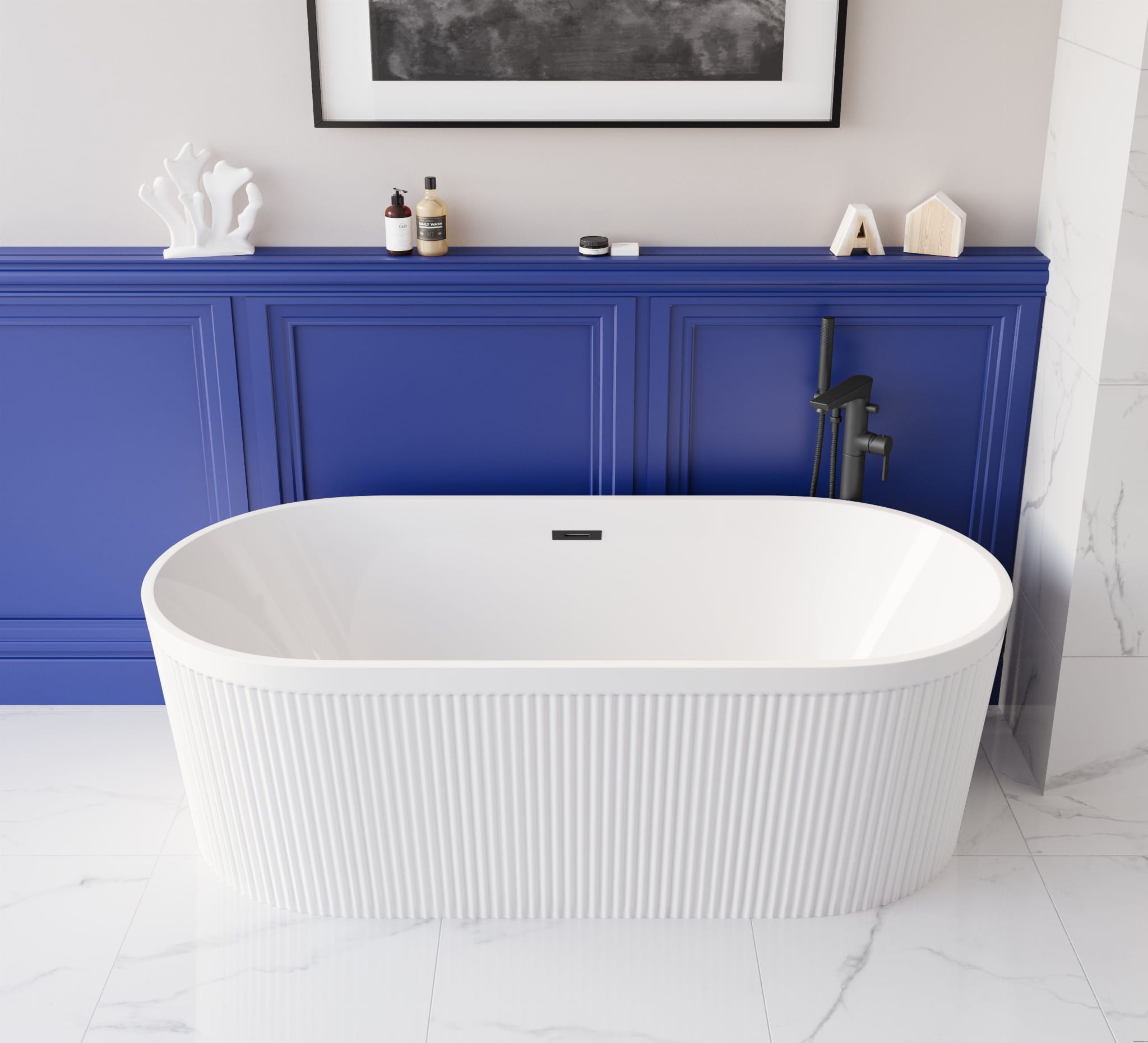 Zanurz się w stylu Glamour! Wolnostojąca wanna Glamour z ryflowaną fakturą to nowość w naszej ofercie! Uzupełnia kolekcję ceramiki utrzymaną w jednakowej, nietuzinkowej fakturze i dzięki temu daje szansę na stworzenie ciekawego wnętrza łazienki urządzonej w spójnym stylu! Faktura, w tym przypadku ryfle, to jeden z najgorętszych trendów przedstawianych na międzynarodowych targach wyposażenia wnętrz np. Salone del Mobile odbywających się w Mediolanie. Elegancki i jednocześnie nowoczesny design wniesie do każdej łazienki odrobiny luksusu i sprawi, że wolnostojąca wanna stanie się efektownym centrum tego pomieszczenia. Wolnostojąca, ryflowana wanna z kolekcji Glamour Invena o wymiarach 170 cm x 80 cm x 58 cm została wykonana z wysokiej jakości akrylu, co czyni ją odporną na uszkodzenia i zarysowania zewnętrzne. Wanna wyposażona została w syfon i odpływ wraz z korkiem i przelewem. Stelaż pozwala na wypoziomowanie wanny przy pomocy regulowanych punktów podparcia (nóżek). Tak przygotowany zestaw czyni ją kompletnym elementem wyposażenia łazienki i jest świetną propozycją, dla tych którzy chcieliby zanurzyć się w odrobinie luksusu!