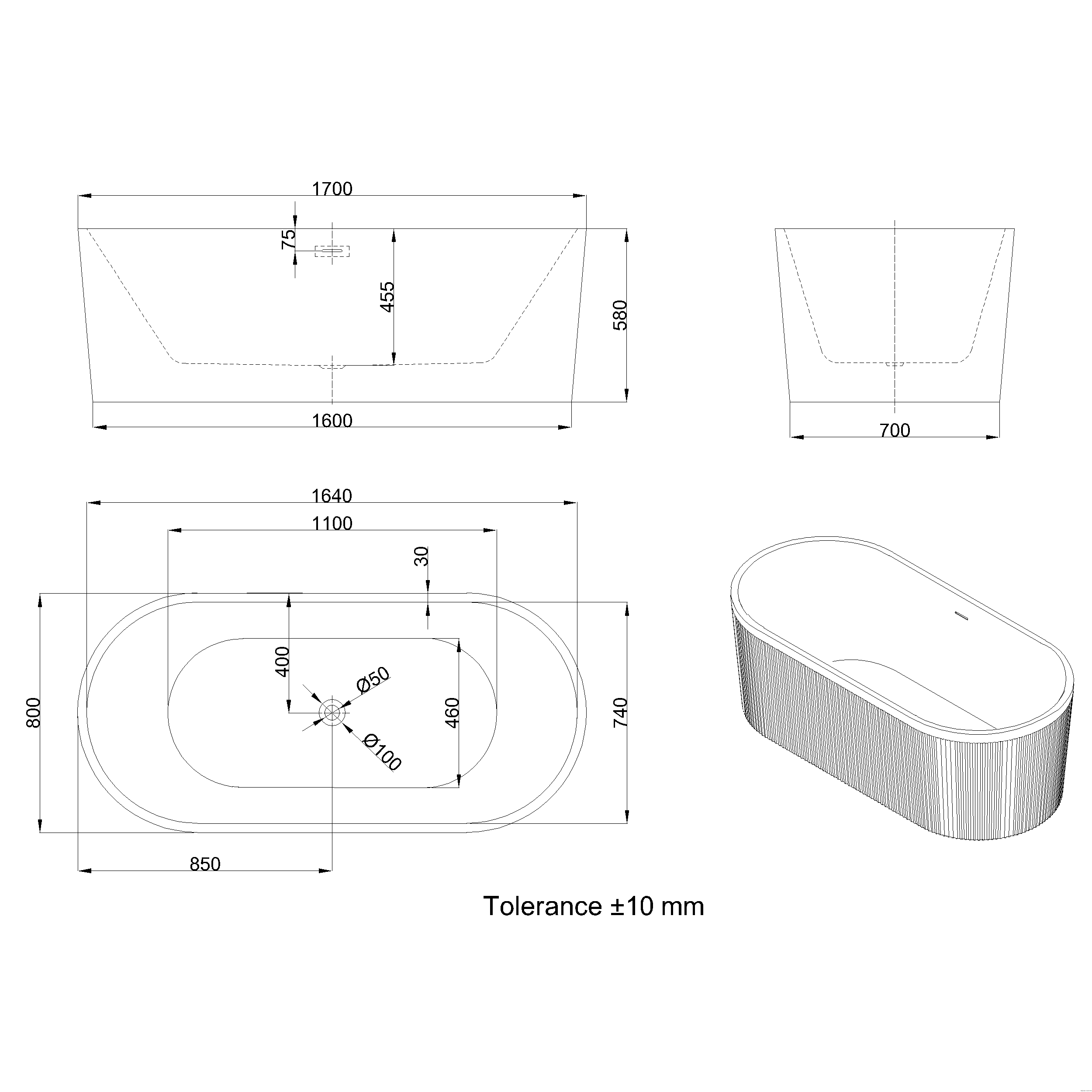 Wanna wolnostojąca, ryflowana 170 cm.. Wymiary: 170 cm x 80 cm x 58 cm. Materiał: Akryl. Grubość ścianki: ~ 8 mm. Stelaż: Stelaż posiada regulowane punkty podparcia (nóżki), które umożliwia wypoziomowanie wanny.. Konstrukcja: wzmacniana, maksymalne obciążenie do 800 kg. Pojemność: 278 l. Syfon i odpływ w zestawie: TAK. Umiejscowienie odpływu: środek wanny. Korek i przelew w zestawie: TAK