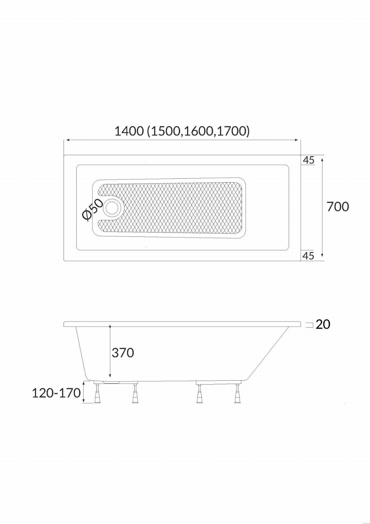 Wanna akrylowa Standard Plus Atum 150x70x54 cm, prostokątna ze stelażem, produkcji Schedline, nr kat.: 3WST.A1P-15070