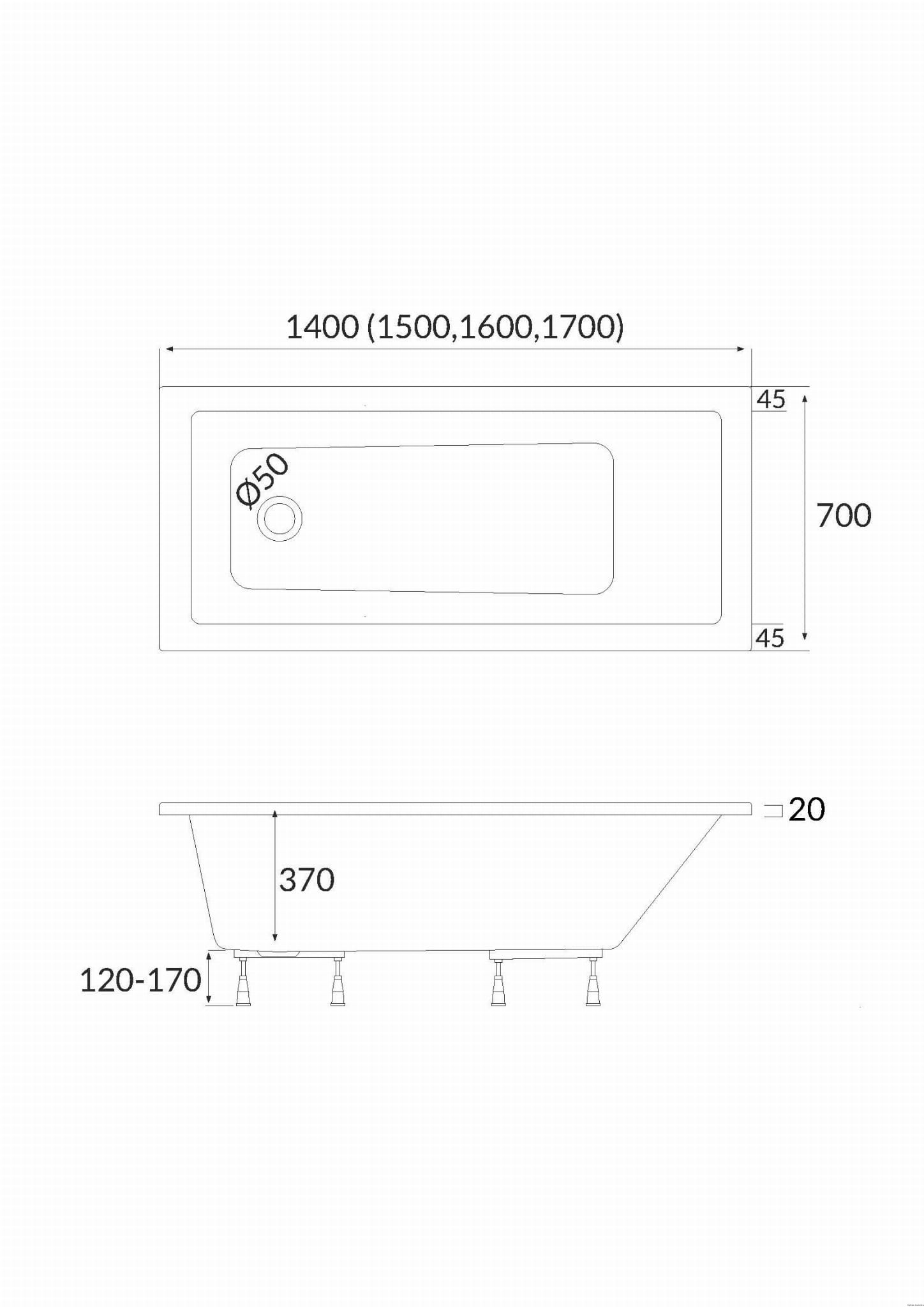Wanna akrylowa Standard Plus Bafia 150x70x54 cm, prostokątna ze stelażem, producent Schedline, numer katalogowy: 3WST.B1P-15070, kolor: biały gładki