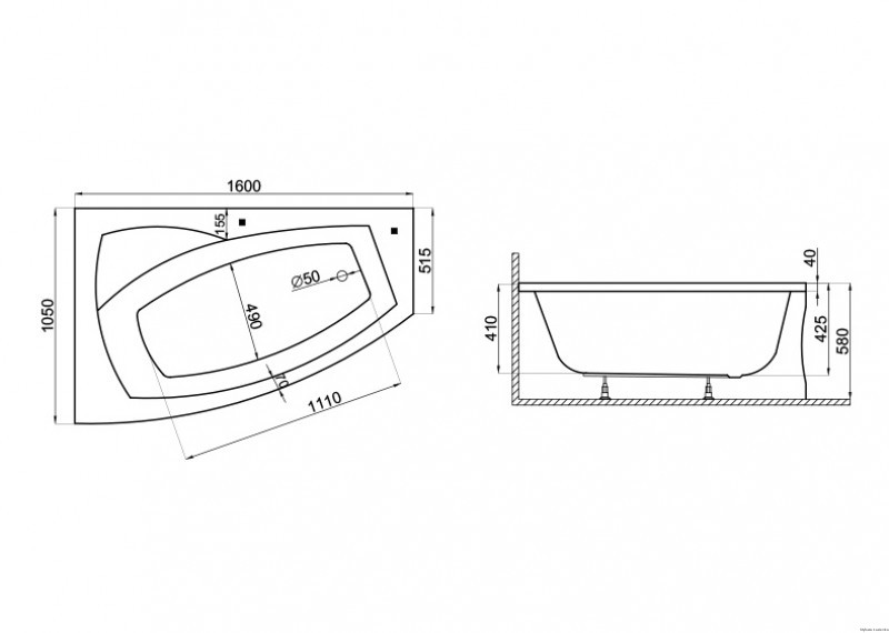 Wanna akrylowa narożna asymetryczna prawa FRIDA 160 produkcji Polimat