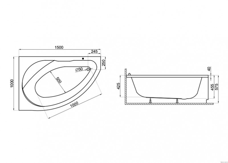 Wanna akrylowa narożna asymetryczna prawa MAREA 160x100 produkcji Polimat