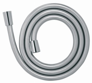 Wąż natryskowy PVC L - 150cm, srebrny połysk. Możliwość zastosowania dowolnej rączki prysznicowej. Końcówka Anti-Twist zapobiega skręcaniu się węża. Podsumowanie: Wąż natryskowy PVC