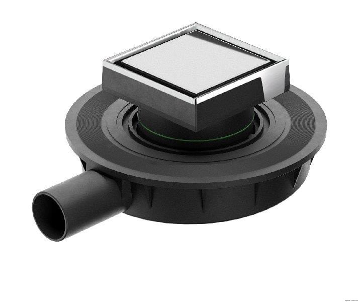 Wpust podłogowy prysznicowy, kratka ze stali nierdzewnej 10x10, odwracalna z możliwością wklejenia płytki, z zaworem antyzapachowym "NRV", MINI DRAIN , odejście poziome o40 mm, wysokość wpustu 72-98 mm.