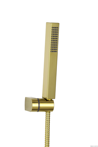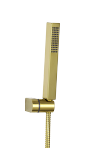 Złoty zestaw natryskowy 1-puktowy z serii Glamour. Idealnie sprawdzi się w strefie prysznicowej, ale także w przy wannie. Wyposażony w 1-funkcyjną słuchawkę natryskową o prostokątnym kształcie.