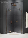 Model Avexa Copper Brushed posiada eleganckie detale w kolorze miedzi, o szczotkowanym wykończeniu. Kabina wyposażona jest w bezpieczne, hartowane szyby o grubości 6mm, z powłoką ochronną Active Shield. W dolnej części drzwi znajduje się rynienka, odprowadzająca wodę z szyby do wewnątrz strefy prysznicowej. Kolekcja objęta 7-letnim okresem gwarancji. Kabina prysznicowa może być montowana zarówno z brodzikiem, jak i bez brodzika. Istnieje możliwość zamówienia produktu także w opcji na wymiar.
