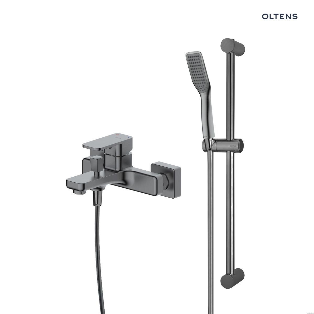 Zestaw Oltens Hadsel bateria wannowo-prysznicowa ścienna z kompletem natryskowym Tinde Alling grafit 36058400