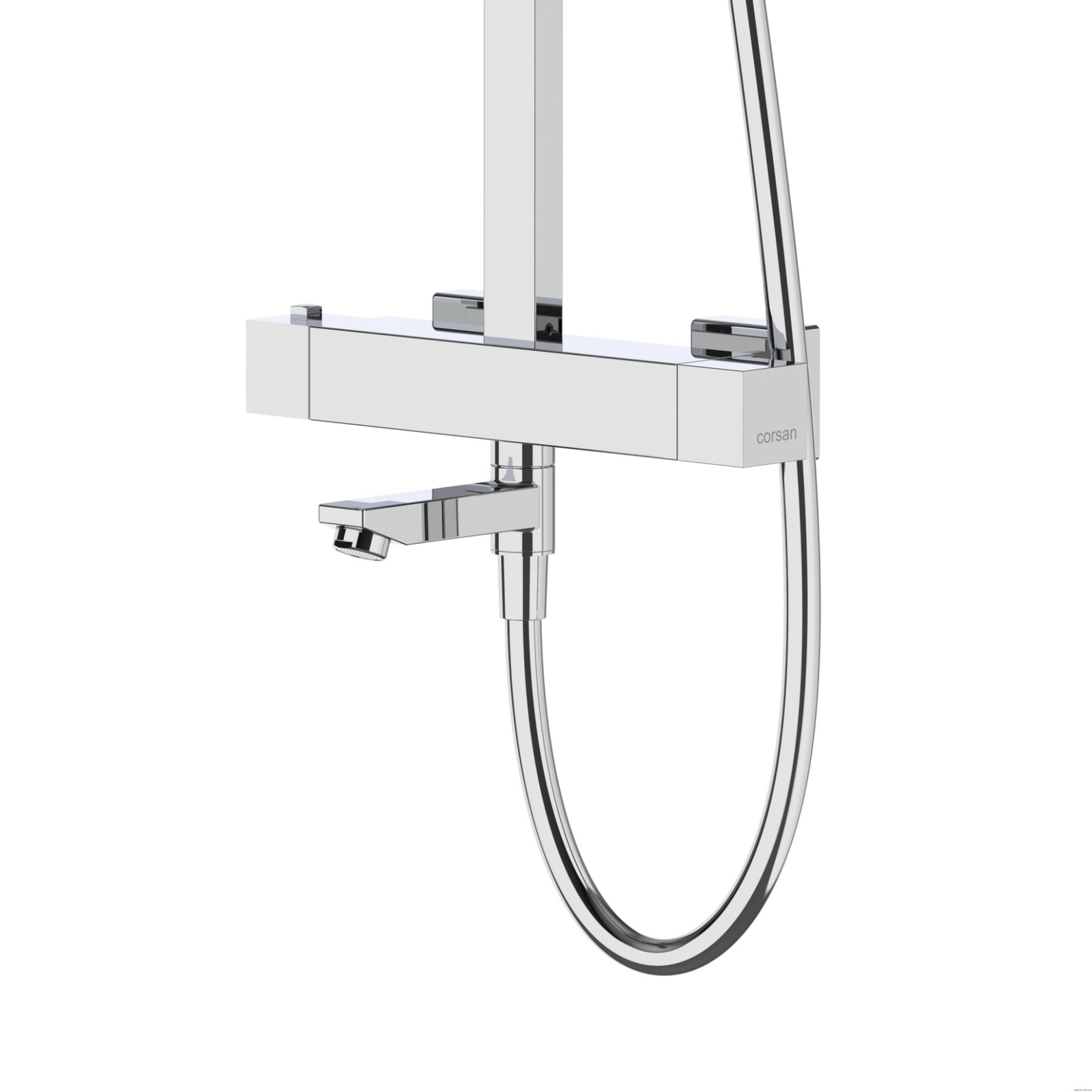 Zestaw Prysznicowy Z Termostatem Kolumna Produkcji Corsan Ango Deszczownica Led Wylewka Obrotowa Chrom