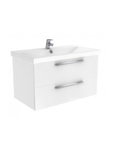 Zestaw mebli łazienkowych z kolekcji Notti w kolorze biały połysk wyprodukowany przez firmę New Trendy. Na zestaw składa się szafka podumywalkowa z dwiema szufladami i umywalka, które wzajemnie świetnie się komponują w każdej łazience. Praktyczny czarny organizer pomoże utrzymać porządek w szufladzie.