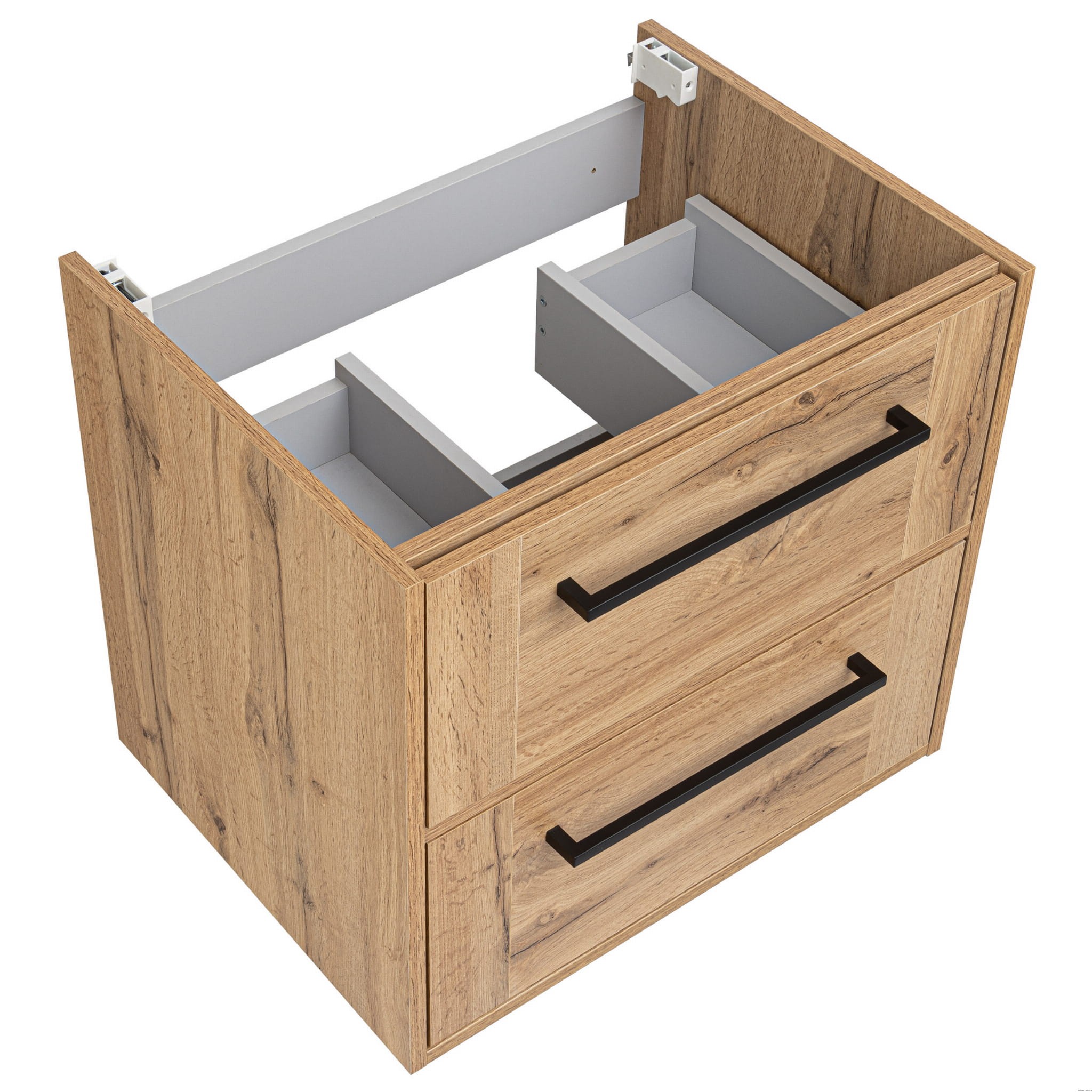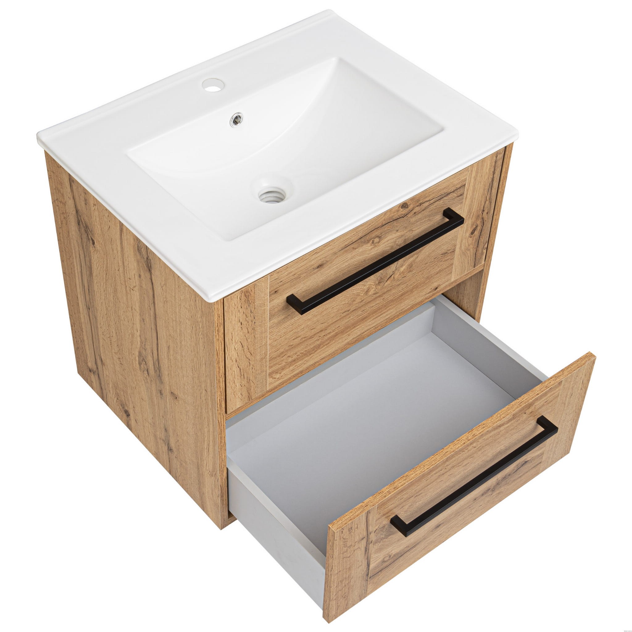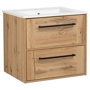 Zestaw o szerokości 60 cm składa się z umywalki ceramicznej oraz szafki pod umywalkę z dwiema Szufladami. Umywalka posiada obszerną miskę oraz wygodną powierzchnię odkładczą na przybory toaletowe. Szafka posiada dwie pakowne i ergonomiczne szuflady wyposażone w system cichego domykania.