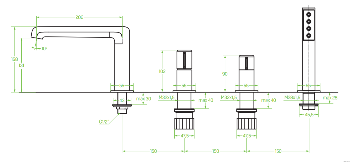Pretto – bateria wannowa 4-otworowa BAO 714D produkcji Laveo
