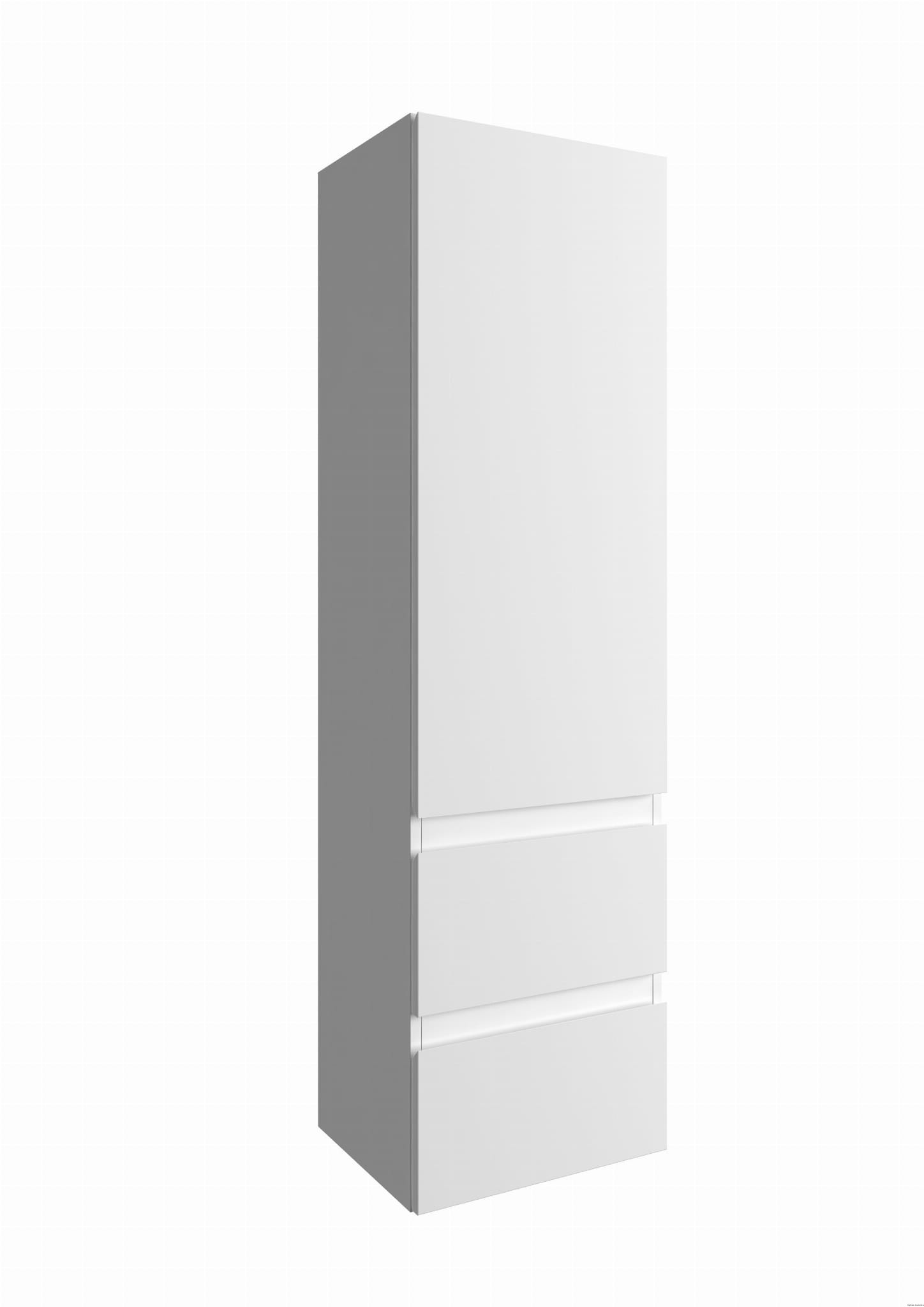 Wysoka szafka wisząca COMO C40, lakier biały połysk, o szerokości 40 cm, typu słupek. Szafka z drzwiczkami i szklaną półką wewnątrz szafki, wyposażona w funkcję cichego domykania drzwiczek DefraSoftClose oraz 2 funkcjonalnymi szufladami z prowadnicami DefraSlim z pełnym wysuwem, systemem DefraSoftClose i estetycznymi grafitowymi ściankami bocznymi. Szafka wykonana jest z materiałów wysokiej jakości, front i korpus są lakierowane, odporne na promieniowanie UV. Formę uchwytów pełnią ścięte górne krawędzie frontów, dzięki czemu szafka ma minimalistyczny wygląd. Możliwość montażu drzwi szafki, by otwierały się w stronę prawą lub lewą, w zależności od potrzeby.