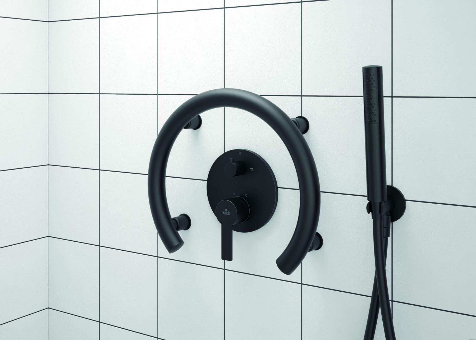 Uchwyt czarny przyścienny w kształcie podkowy Vital produkcji Deante.
