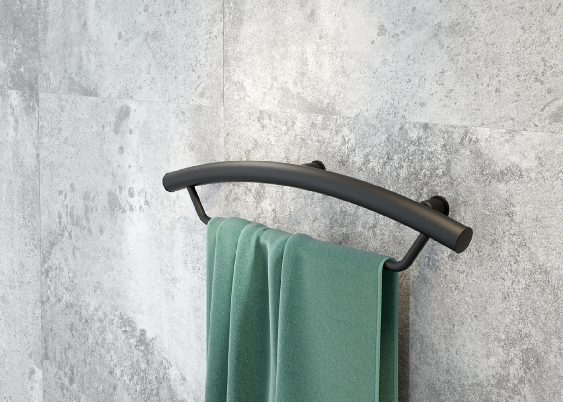 Uchwyt czarny przyścienny z miejscem na ręcznik Vital produkcji Deante.