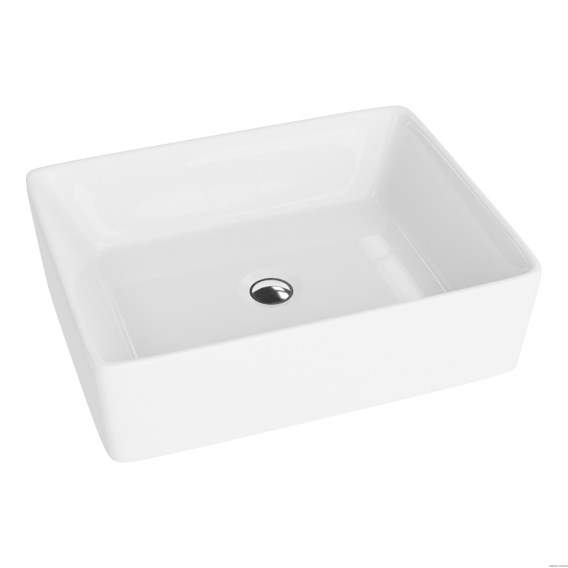 Umywalka ALEGRANZA posiada prostokątny kształt, który jest przełamany w wewnętrznym obszarze lekko pochylonym rantem. Biały kolor i proste linie podkreślają piękno modelu ALEGRANZA. Umywalka przeznaczona jest do montażu bezpośrednio na blacie łazienkowym, a jej rozmiar daje wiele możliwości. Produkt sprawdzi się zarówno w małych i dużych łazienkach, nadając atrakcyjny design.