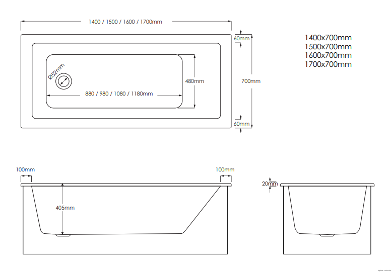 - Średnica odpływu: 52mm