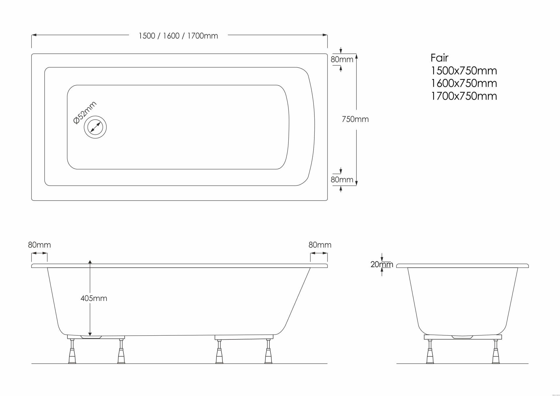 Wanna akrylowa Stabilsound Plus® Fair 150x75x57 cm, prostokątna ze stelażem, producent Schedline, numer katalogowy: 3WSP.F1P-15075, kolor: biały gładki