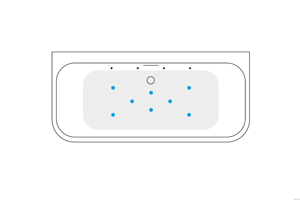 Rozmieszczenie dysz i punktów świetlnych w wannie widoczny jest na zdjęciu.