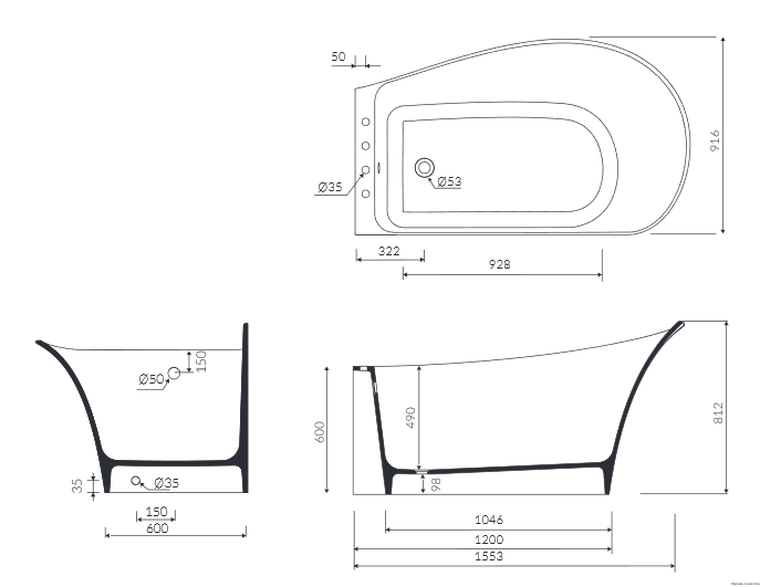Producent MarmorinWanna wolnostojąca BALTA z czarną podstawą prod. Marmorin nr kat. : P_W_009_03_1550