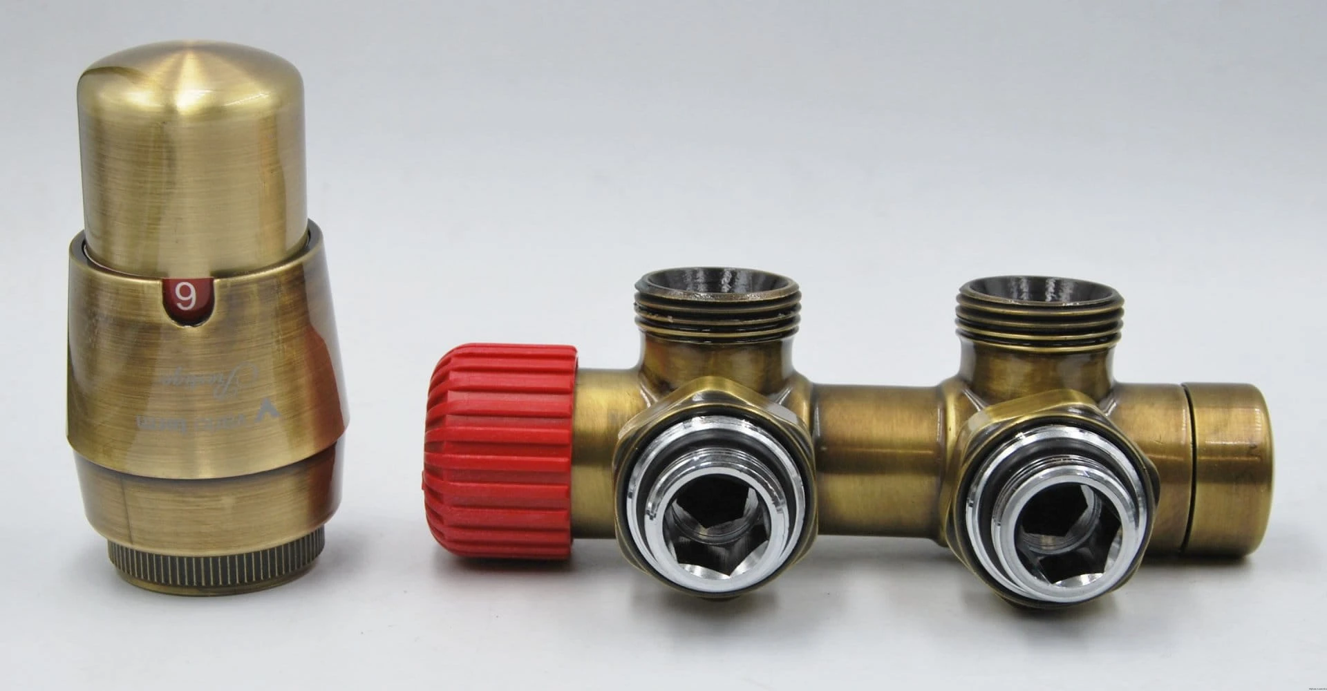 Zawory grzejnikowe - Zestaw instalacyjny Twins mosiądz antyczny produkcji Vario Term TSGS0211CFK/L / TSGS0211CFK/P